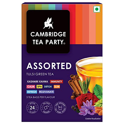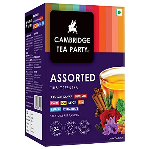 Cambridge Tea Party Mix Assorted Tea Sampler Pack 36 Tea Bags Cleanse Pure Light Green Spa Lemon Lime Lemongrass Calm Chamomile Detox Kahwa Slim Orange Refresh Tulsi Mint 6 tea bags each