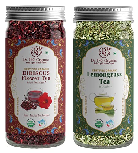 Dr. JPG Organic Hibiscus Flower Tea (50g)+Lemongrass Tea (50g) | INDIA ORGANIC Certified |ISO Certified.