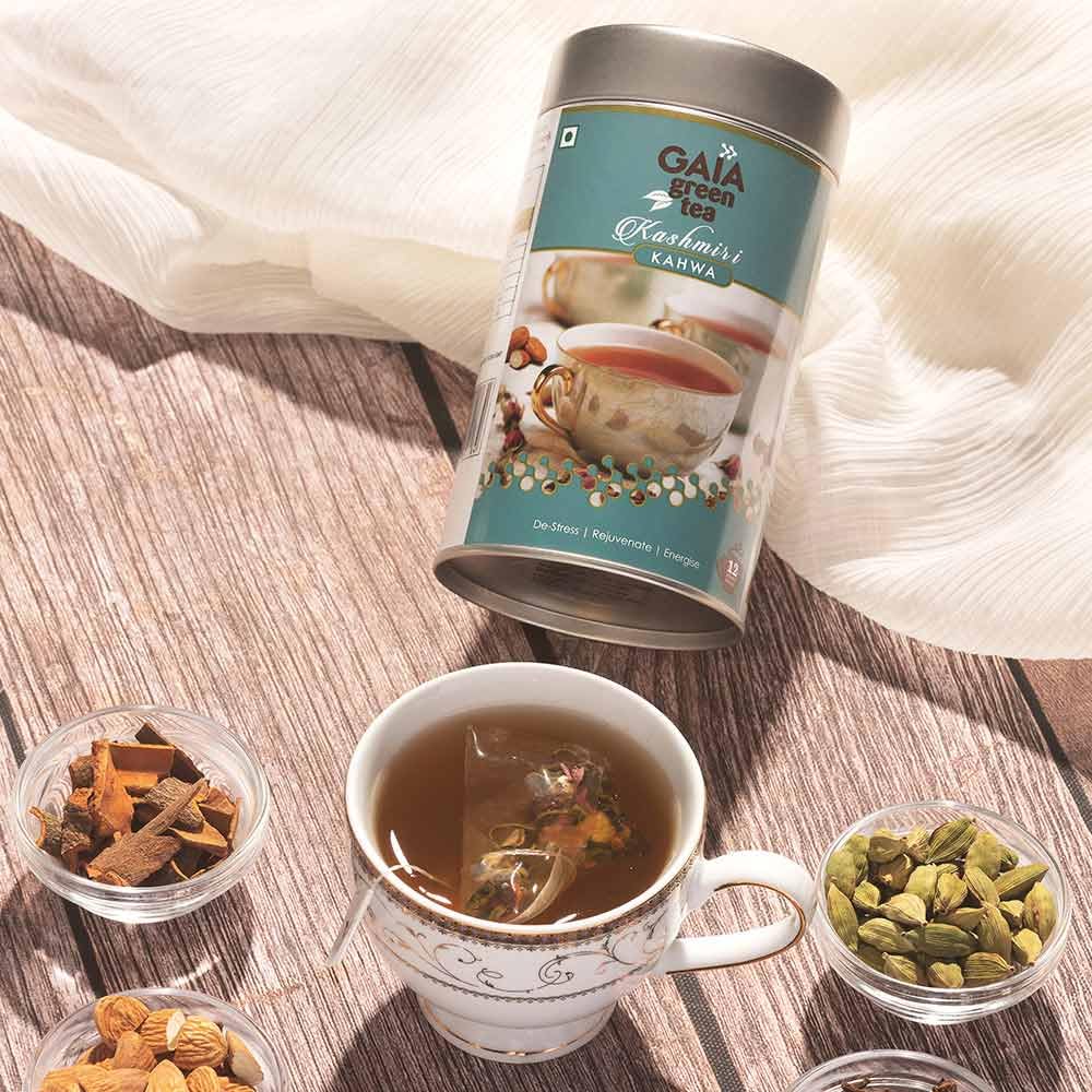 Gaia Green Tea | Kashmiri kahwa Natural stress buster | Improves digestion | Builds immunity | Improves skin health | Boosts energy 100g