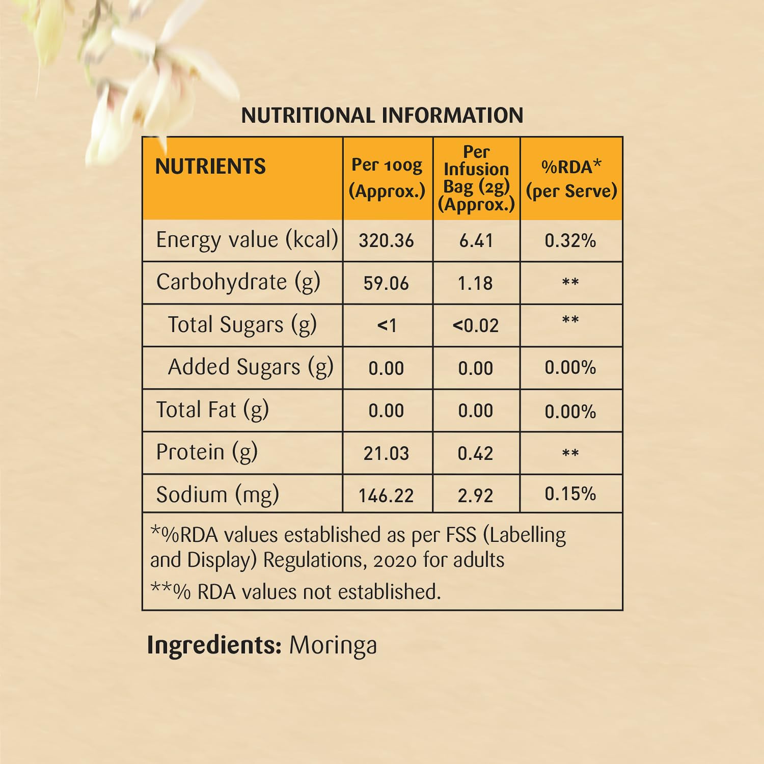 Healthful Antioxidant Boost: Beyond its calming and therapeutic effects Moringa tea is rich in antioxidants contributing to overall health by combating oxidative stress and supporting the body's natural defense mechanisms.