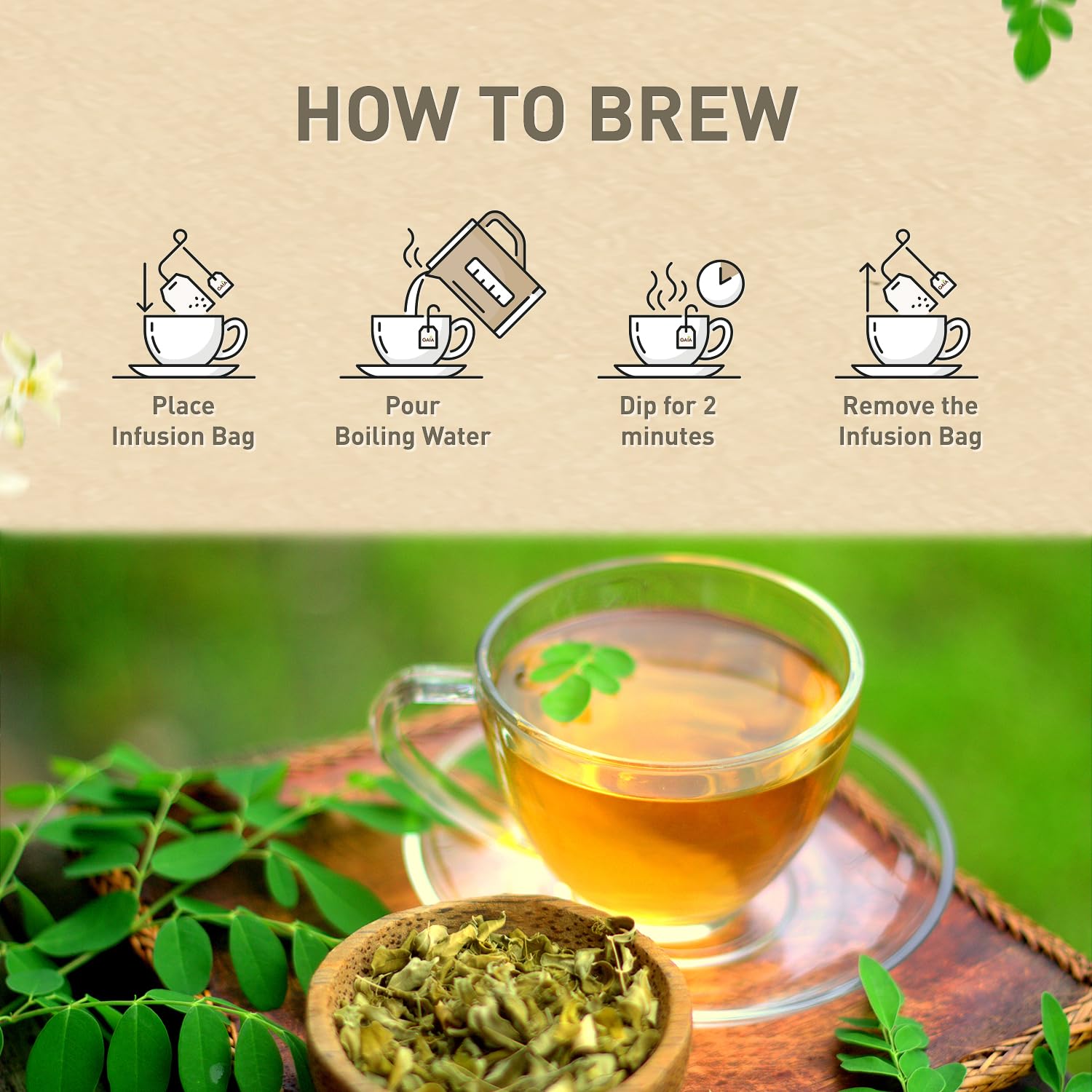 Digestive Soothing: The tea derived from Moringa leaves has soothing effects on the digestive system aiding in relieving discomfort promoting healthy digestion and contributing to overall gut wellness.