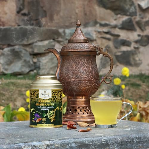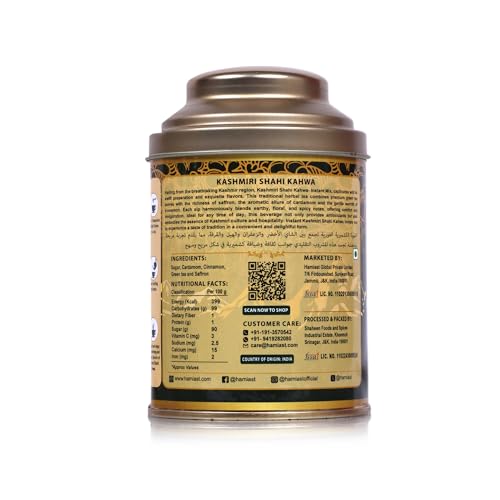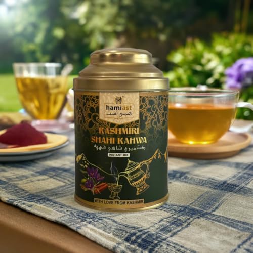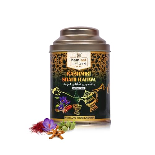 Hamiast renowned for delivering authentic Kashmiri delicacies presents the Hamiast Shahi Kahwa Qawah Instant Mix—a ready-to-drink beverage that brings the essence of Kashmir straight to your cup. This blend combines premium green tea cardamom saffron cinnamon and sugar for a rich aromatic kahwa experience that can be prepared in minutes. Made from an authentic Kashmiri recipe this instant kahwa mix is a blend of luxurious saffron strands warming spices and refreshing green tea. Savour the authentic flavours of Kashmir with every sip of this indulgent beverage.