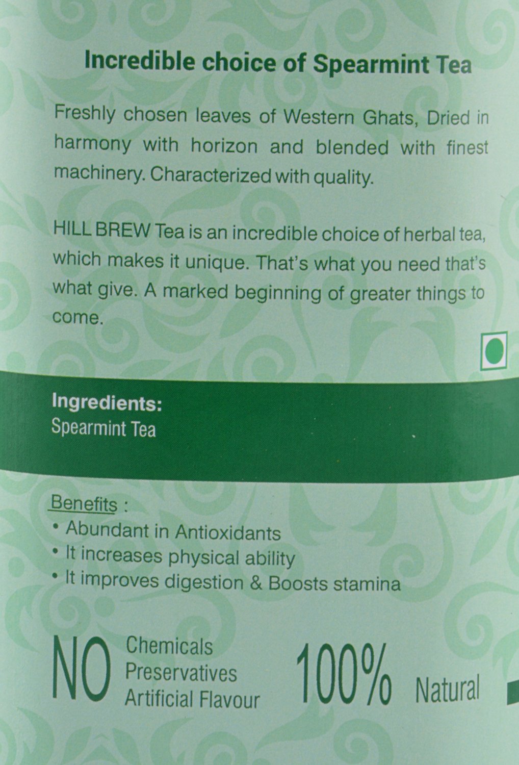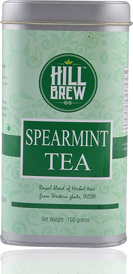 Hill Brew presents this spearmint tea which is made of spearmint. Best before 6 months from the manufacturing date.Spearmint tea is prepared from the best quality menthe spicata. Spearmint tea may be used as treatment of several diseases and smoothens the process of digestion. It is capable of reducing the level of androgens in the body. Spearmint tea is also known to control sudden outbursts of acne by controlling the prevalence of oily skin.Spearmint oil found in this herbal tea is widely consumed and studied around the world for its renowned antioxidant activity and health benefits. Many people don't realize that modest spearmint leaves contain antioxidants polyphenols flavonoids rosmarinic acid and over 50 other important compounds. Here are a few of the most well-researched spearmint tea benefits.
