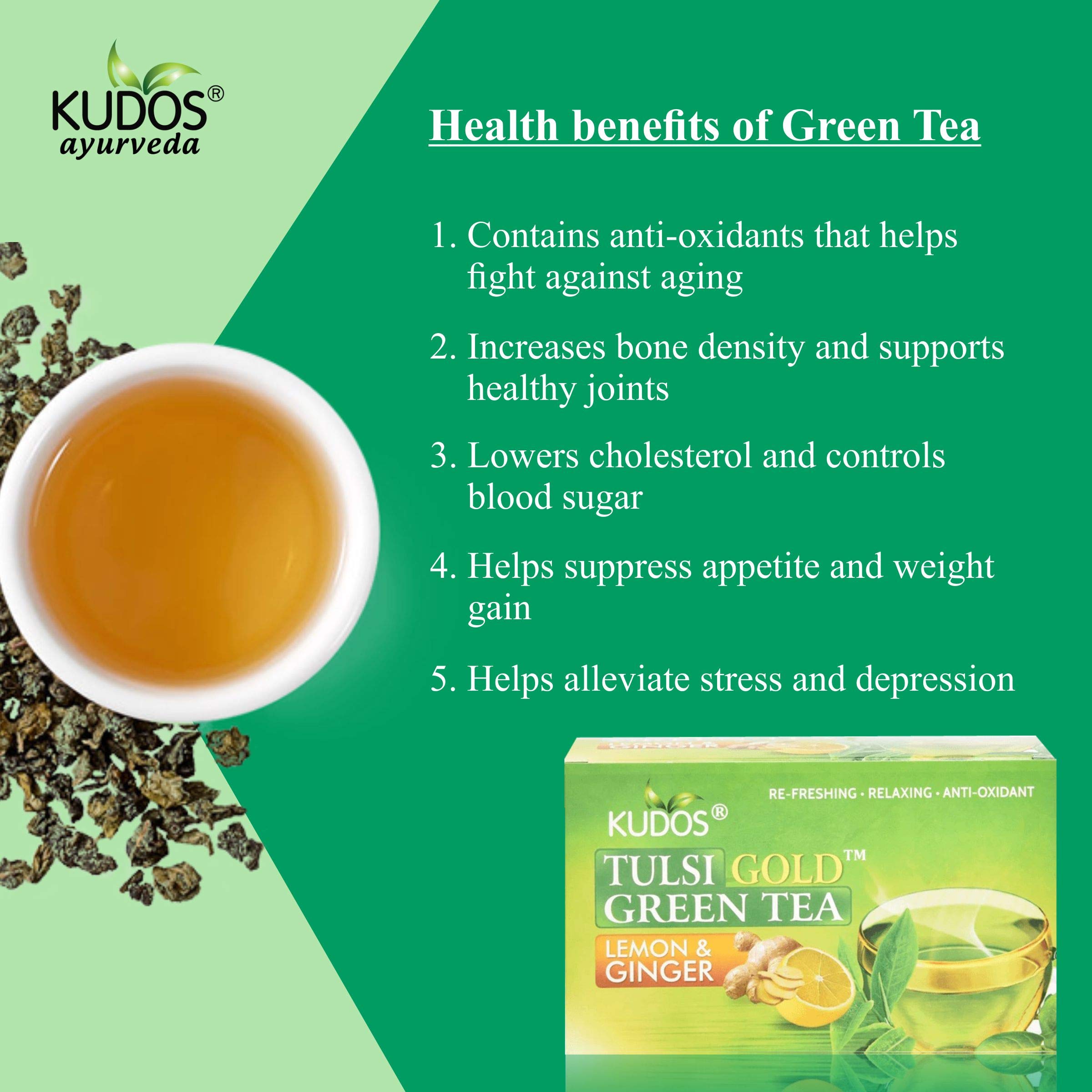 Kudos TULSI GOLD GREEN TEA 25 Tea Bag Pack of 3