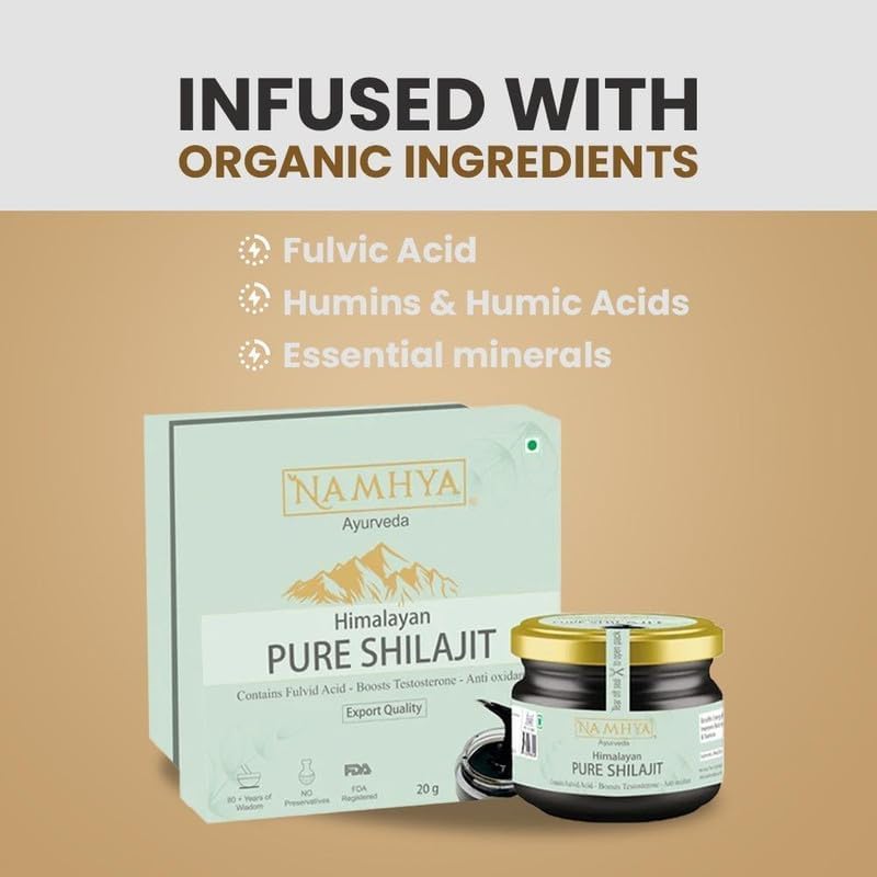 Namhya 100% Pure Himalayan Shilajit Resin for Men & Women I Ayurvedic & Natural Energy, Helps to boost performance & stamina I Supplement with No Preservatives (20g)