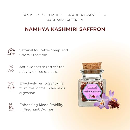 NAMHYA Original Kashmiri Saffron/Kesar (1g) Premium Kishtwari Lacha | Pure & Natural | Zaafran for Pregnant Women, Pooja Rituals, Cooking, & Skincare