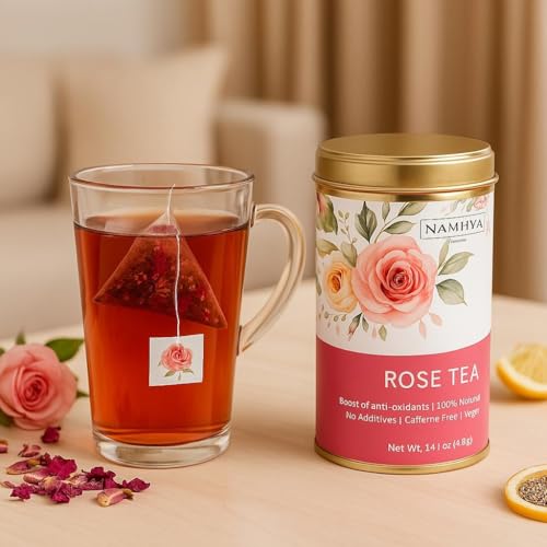 HomeHealth & PersonalDiet & NutritionHerbal Tea & CoffeeNamhya Rose Tea | Skin and Hair Health | Rose petal tea | 20 Rose Tea Bag | Rich in Vitamin C | For Beautiful Hair & Skin | Caffeine Free | 100% Natural, Flower Based, Herbal Tea