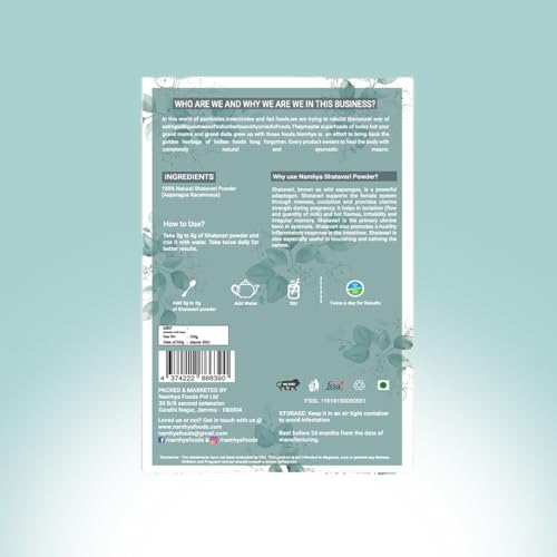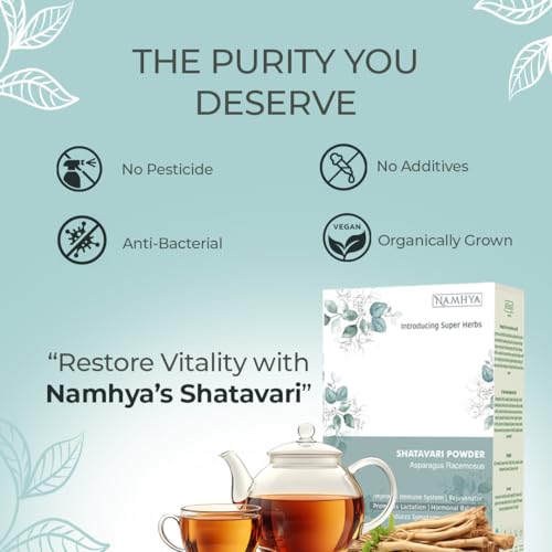 Namhya Shatavari Powder (Asparagus Racemosus) | 100 gm | Pack of 1 | Female Tonic & Herbal Health Supplement for Women's Hormonal Balance & Wellness | No Added Preservatives or Additives, Vegan
