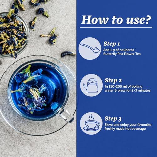 • No Artificial Additives: neuherbs Butterfly Pea Flower Tea is 100% natural & does not contain any artificial colour flavour or preservatives delivering a natural and authentic experience with every sip.