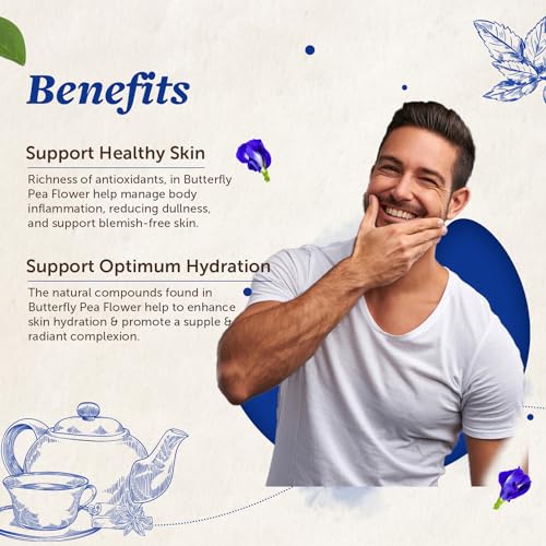 • Butterfly Pea Flower Tea For Skin: Butterfly Pea Flower Tea is known to be rich in antioxidants that help manage body inflammation reduce skin irritation and dullness and support blemish-free skin.