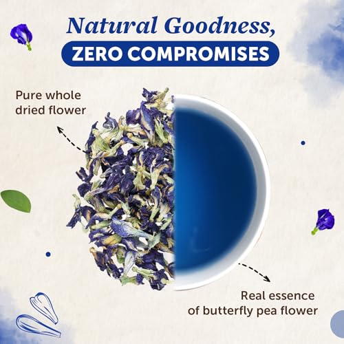 • 100% Natural: Made from 100% pure & natural farm fresh hand-picked Butterfly Pea flowers with no dust & dirt carefully selected from Indian farms ensuring that we only offer the finest whole flowers.