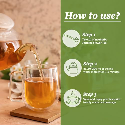 • No Added Preservatives: neuherbs Jasmine Flower Tea is natural and does not contain any artificial colour flavour stimulants or additives. Making it a natural and healthy beverage choice for tea lovers.