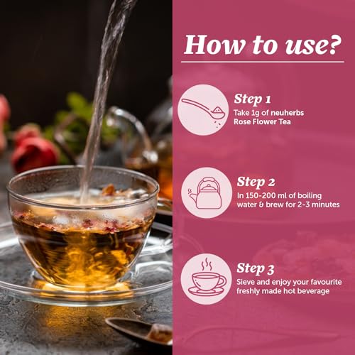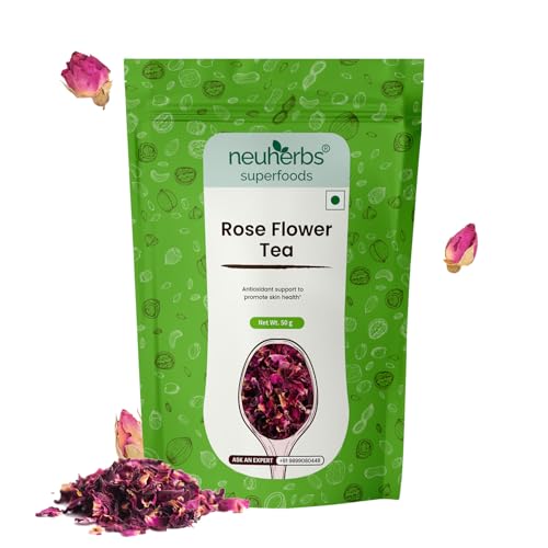 Neuherbs Rose Flower Tea 50g (Pack of 1) | Promote Skin Glow | 100% Clean, Natural & Pure | Rich In Antioxidant | Caffeine Free Tea