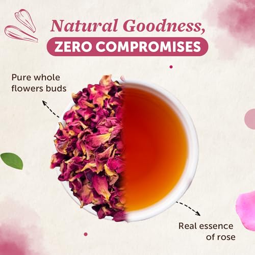 • Naturally Caffeine-Free- Enjoy this caffeine free beverage: rose flower tea for glowing skin which has no stimulants no added colour flavour or additives and savor the true beauty of rose flowers.