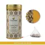 This tea is a relaxing & rejuvenating blend of loose leaf green tea & yellow chamomile flowers producing a fragrant floral brew highly regarded for its soothing & therapeutic effects. Loose leaves are individually packaged in a pyramid-shaped nylon tea bag to give you the full loose leaf flavour experience without any mess. Chamomile has a good reputation for its calming & soothing properties & combined with green tea it offers a unique flavour & wellness profile. Chamomile has a magical ability to relieve headaches alleviate insomnia & enhance a peaceful night⬢s sleep besides being a digestive stimulant & a muscle relaxant with a bright golden-coloured infusion. This tranquil tea is a smooth & sweet infusion with vegetal & floral notes. It is very easy to brew just dip a pyramid tea bag in a cup of 180ml hot water (85 âÆ) & steep for 1-2 minutes (steep longer for a stronger brew). Serve hot or as an iced tea to be consumed without milk. Sweetener or honey can be added as per taste.