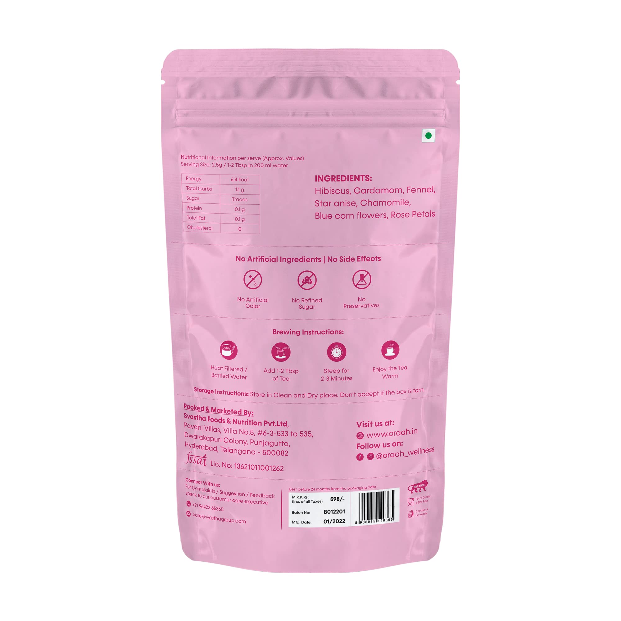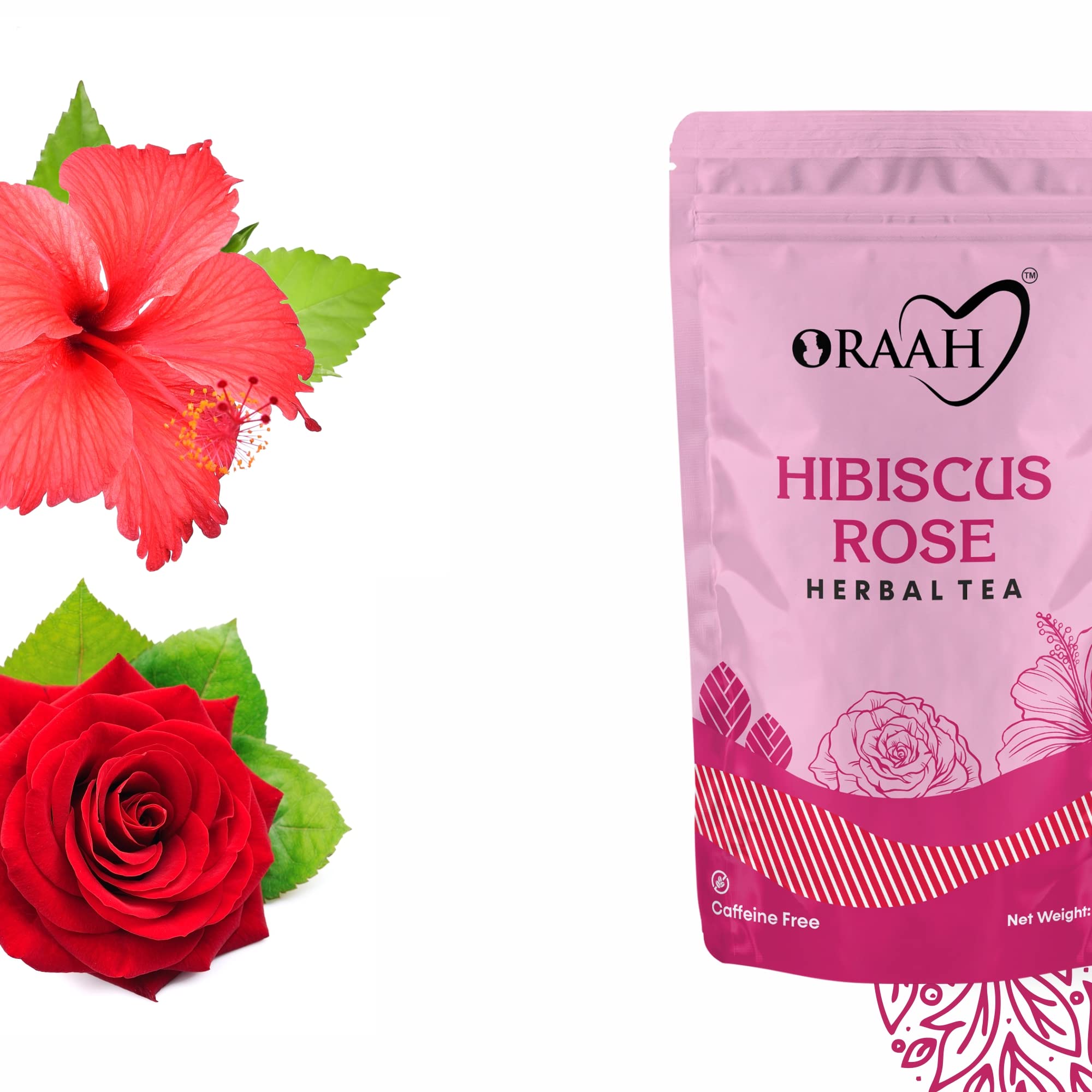 Oraah Hibiscus Rose Herbal Tea- 100gms | 100% Natural Ingredients | Calming Hibiscus & Fragrant Rose | Nourishing Hydrating Alleviates Stress Promotes Better Sleep