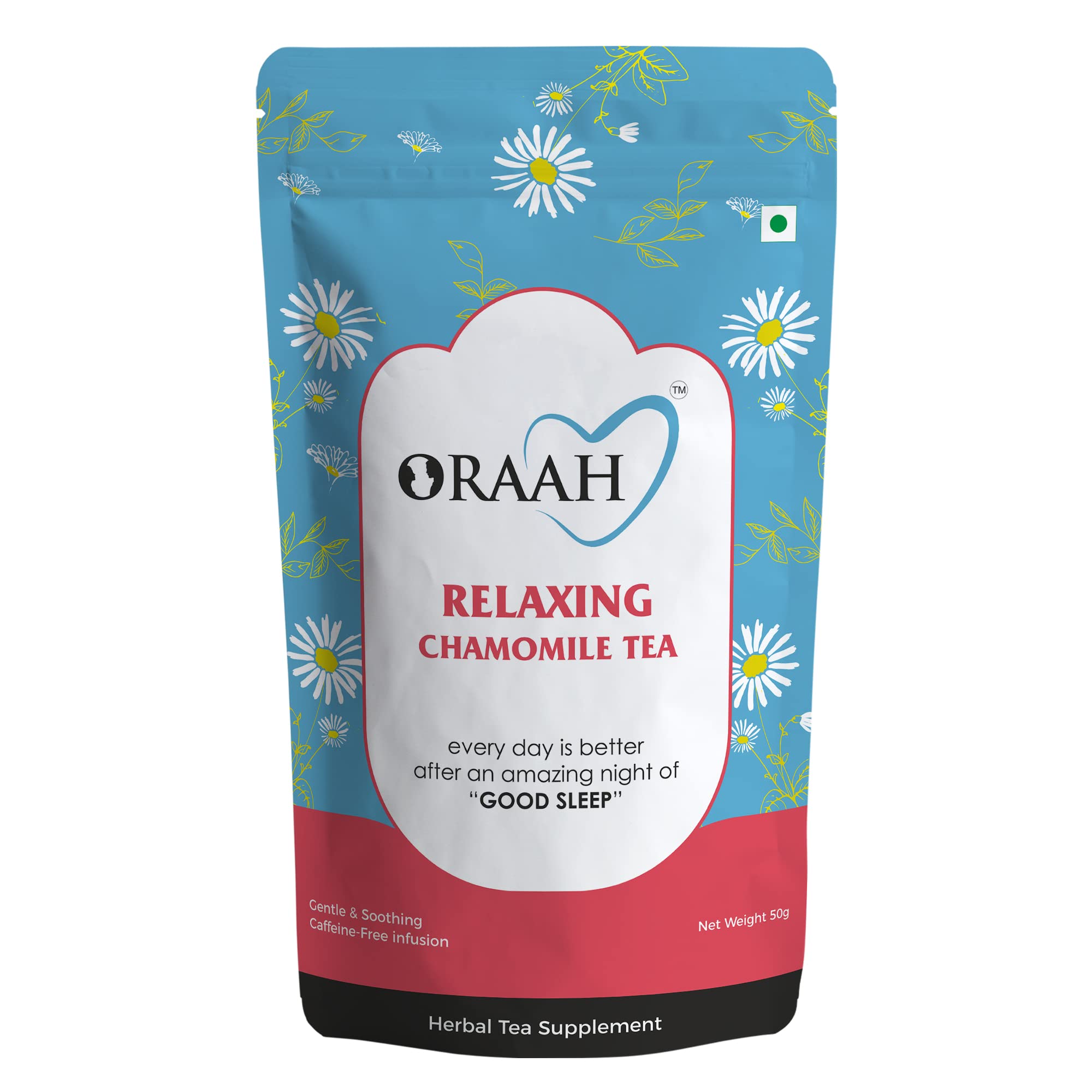 Oraah Relaxing Chamomile Green Tea for Good Sleep I Made with 100% Whole Leaf & Natural Chamomile Flowers 50gms (Pack 1)