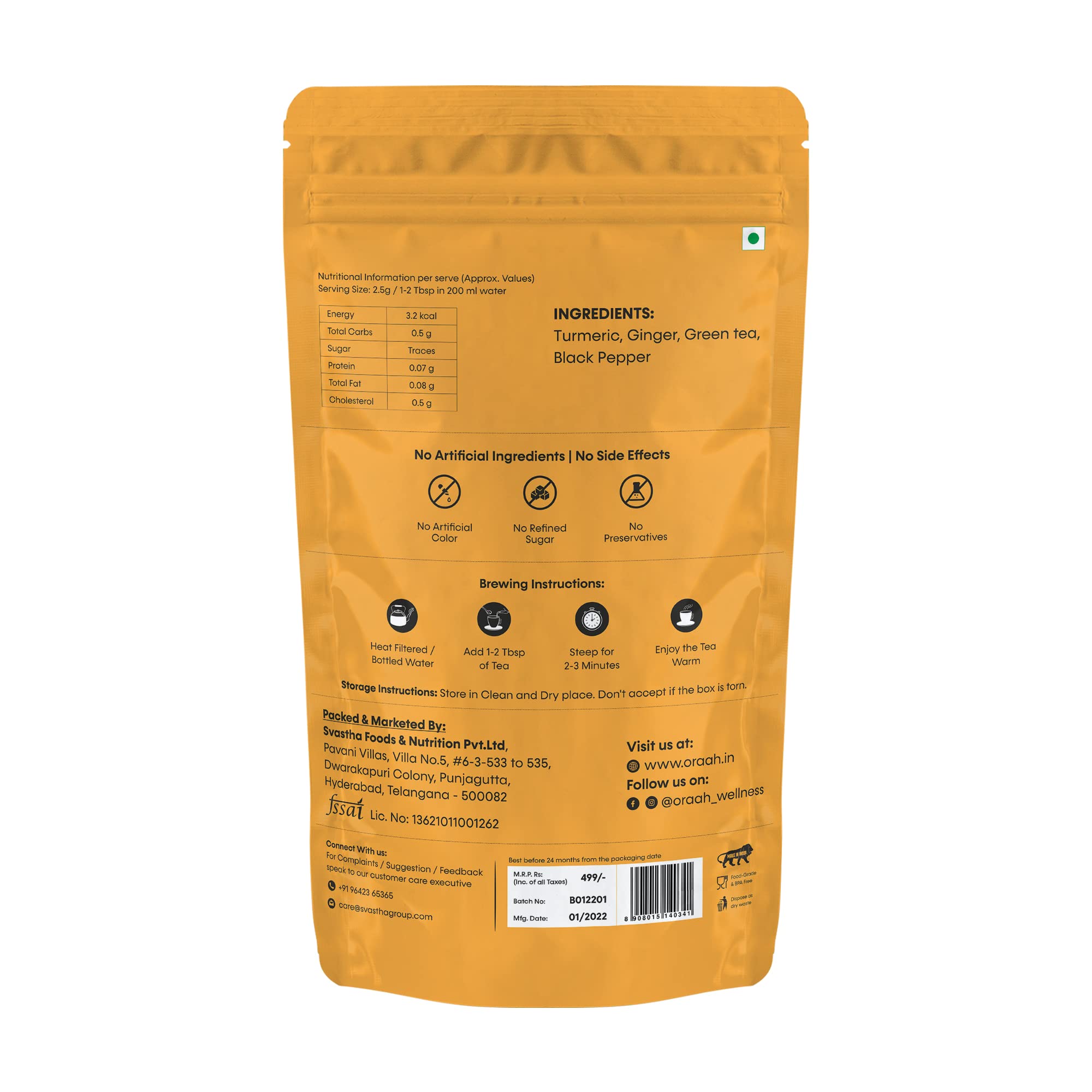 The medicinal properties of Turmeric Ginger & other spices boost your immune system. For centuries the combination of these herbs has proved to be an integral part of Ayurvedic practices. With no bitterness this Herbal Tea is not just a good healer but its soothing taste is also sure to uplift your mood.