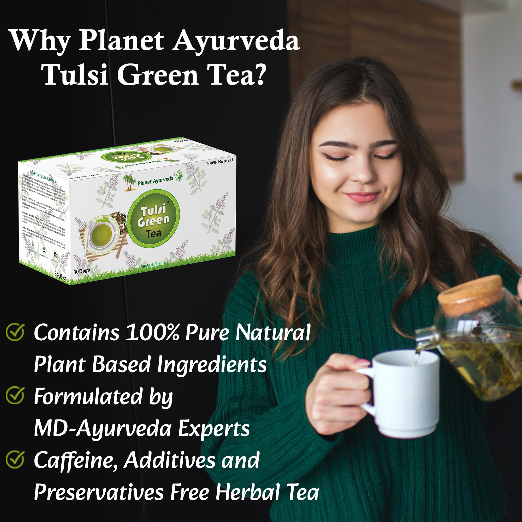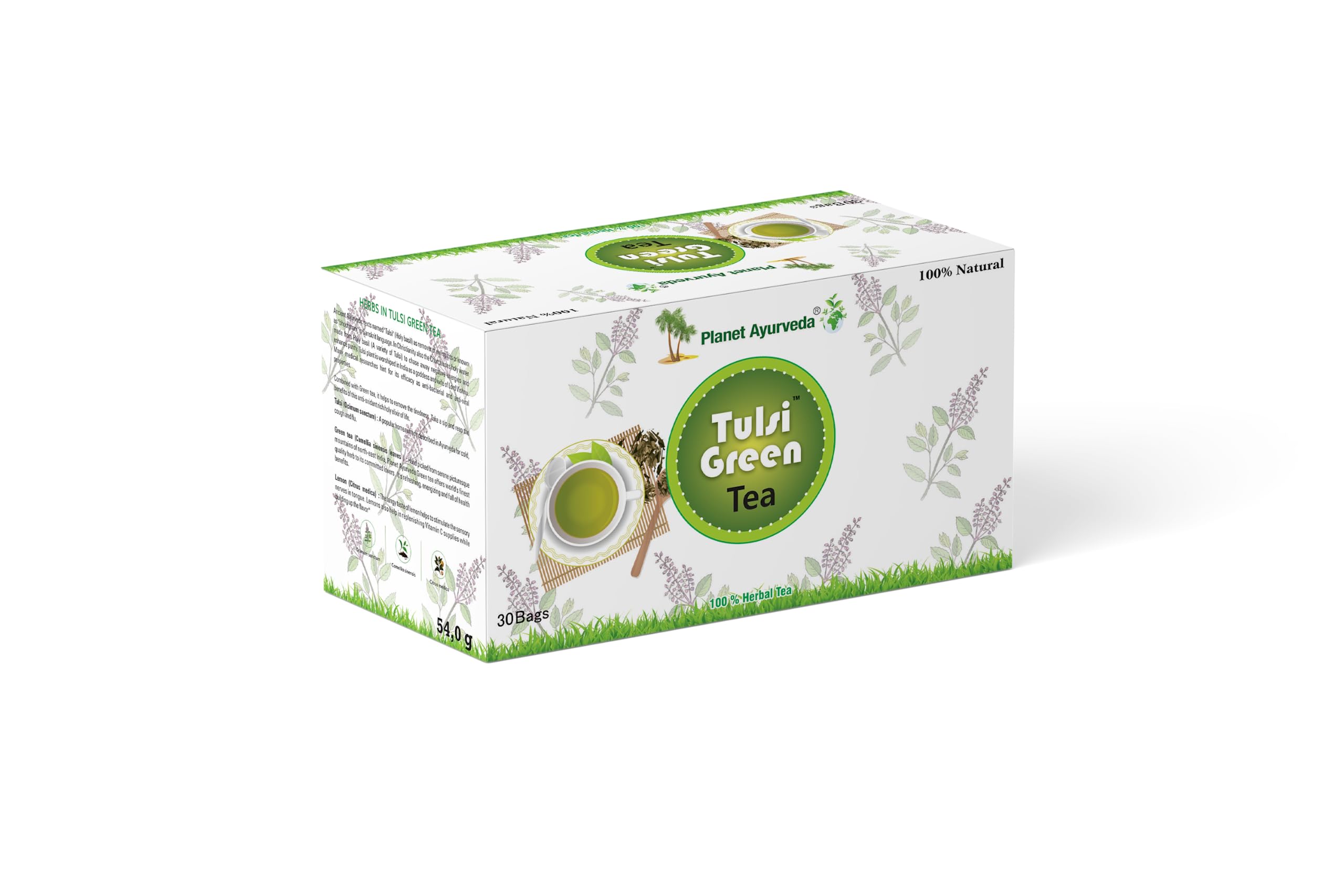 Planet Ayurveda Pure & Light Organic Tulsi Green Tea Bags 30pcs All Natural Flavour Zero Calories Soothing Infusion for Digestive Wellness (30 N Ã 1.8g EACH)