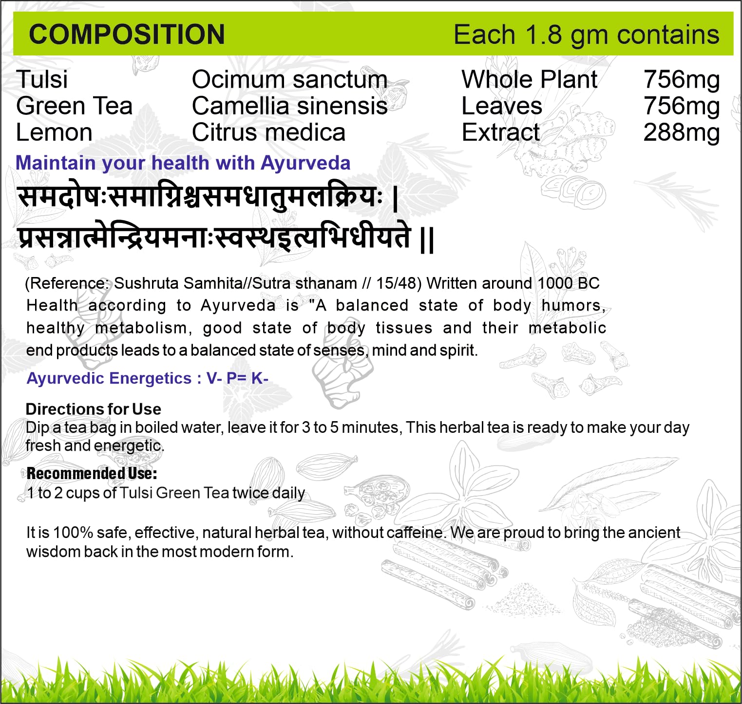 Boosts Energy and Focus: Tulsi Green Tea contains natural compounds that can provide a gentle energy boost and promote mental clarity helping to enhance focus and concentration.