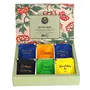 "IN THE BOX: Kashmiri Kahwa tea - Our authentic kahwa chai pays tribute to the beauty of Kashmir a paradise of mountain lakes pine forests and snow-clad peaks. The green tea blend is infused with almonds safflower cardamapricot saffron transforming your hot brew into an indulgent elixir. Jasmine green tea with peach - This classic aromatic jasmine green tea has a fruity twist- green tea leaves are combined with quality jasmine flowers and juicy peach to form a magical infusion that is harmonious and shall transport you to a Zen state of mind! Hibiscus rose green tea with apple - Enjoy an authentic Turkish apple tea which is a mix of refreshing hibiscus rose green tea infusion with apple bits strawblack currants and lemon peel transporting you to Turkey's bustling markets. Rose green tea with lychee - Enjoy the wonderful floral aromas of rose green tea with lychee. An all-time favorite since our launch you can enjoy this tea both hot and cold. It makes for a wonderful brew too. Jasmine green tea - Sencha green jasmine tea has been drunk for centuries in the Far East and is rich in antiwhich have a host of health benefits. It is also said to promote a healthy glowing skin. This fragrant tea shall your mind. Rose Oolong tea - our rose oolong tea is an alluring tea blend infused with crushed rose petand rosebuds. The exquisite oolong tea base evokes a sense of calm and tranquility."
