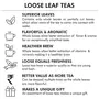 • GREAT TASTE AND AROMA - These blends of loose leaf green tea make delicious brews with a rich taste. The blends with herbs and flowers have a delicious flavor and warming aroma.