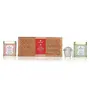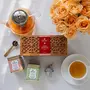 An expertly curated range of two loose leaf wellness teas serving versatile brews for cleansing and calming. This collection of magical elixirs has been touted to have a myriad of health benefits with each tea blend possessing its unique flavor profile and mesmerizing aroma. These loose-leaf tea blends contain nutrient-rich Indian ingredients like exotic flowers blended with green tea which have been known for their wellness properties since ancient times. It is a complete wellness kit with two healthy loose teas and an infuser to brew them thus taking care of your well-being throughout the day. Handcrafted loose teas packed in petite festive tins put together in a beautiful handmade wooden box. This assortment makes for a true Indian masterpiece with every tea having its unique flavor and distinct health benefits