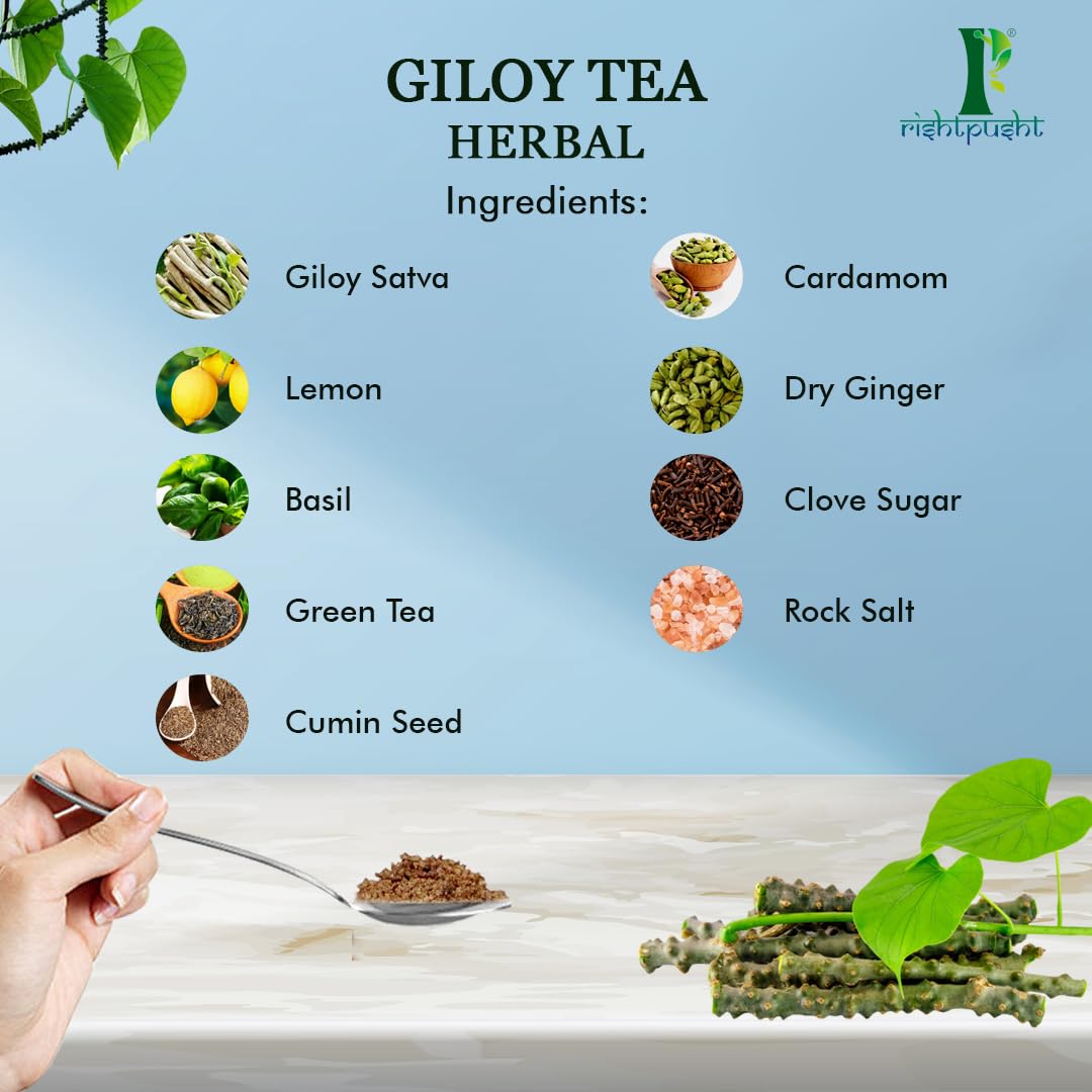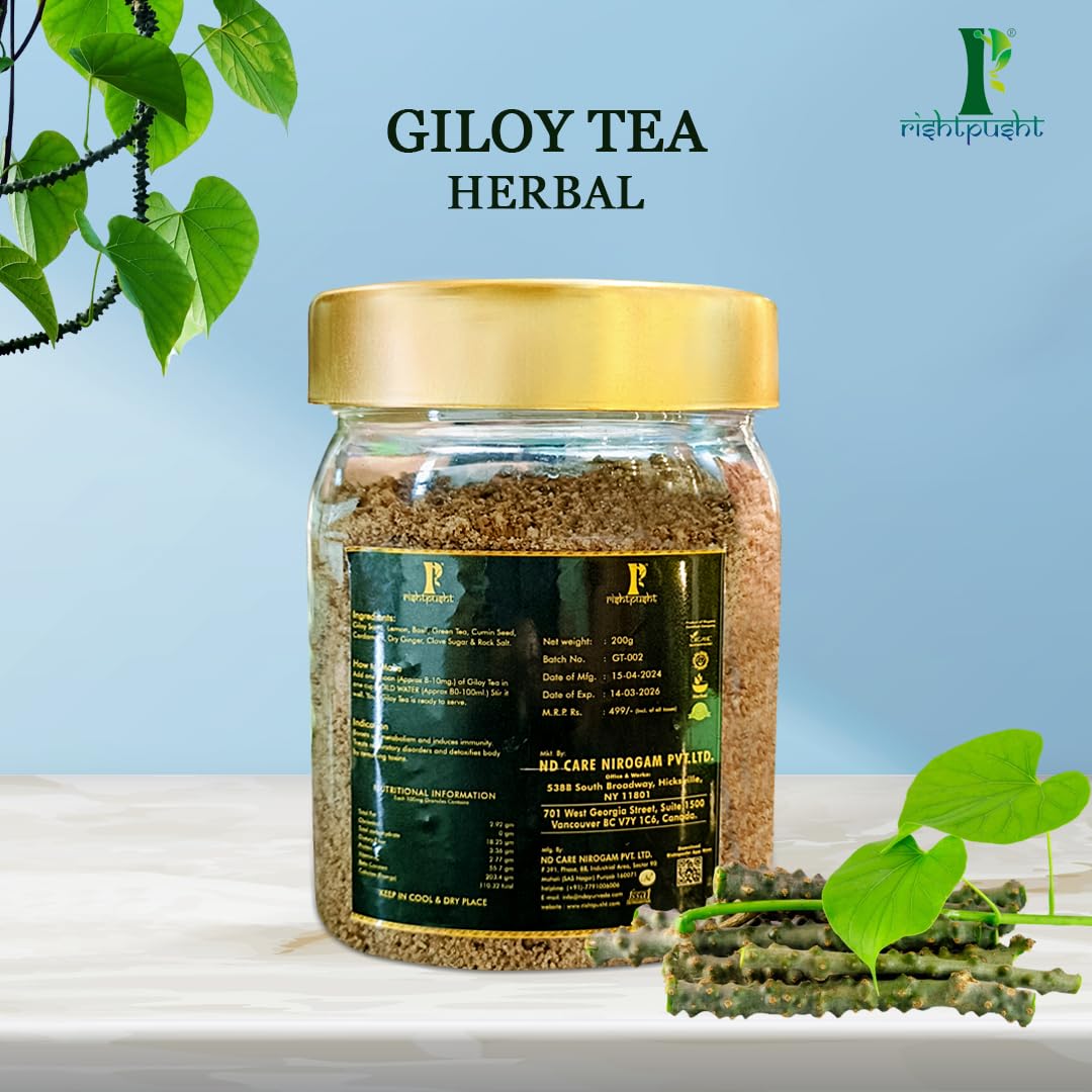 Rishtpusht Pure Ayurvedic Herbs Giloy Green Herbal Tea for Help Immunity Booster Made Giloy Tea The Indian chai with Natural Protein Vitamin C गिलोय चाय - Combo (Pack of 2 200gm on Each Pack)