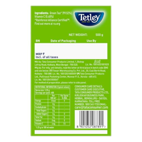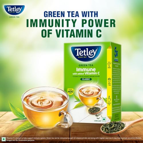 Start afresh with Tetley! To stay refreshed all day sip the refreshing Tetley Long Leaf Green Tea. Being an excellent source of antioxidants Tetley Green Tea has various beneficial effects on health such as it helps you feel relaxed by hydrating your body and flushes out all the toxins from your body. The finest and long tea leaves are blended for a smooth and soft taste with an all-natural green tea flavor. You can now enjoy freshness whenever and wherever you want such as after breakfast before exercise or before bedtime. USAGE INSTRUCTIONS: Add just ½ tbsp. of Green Tea Leaves to boiling water. Brew the tea for 2 minutes. Add honey if desired & enjoy the perfect green tea!