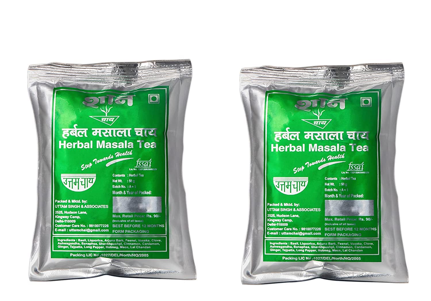 UTTAM TEA Shaan Herbal Tea Masala 100% Natural Herbal Tea for Immunity Herbal Masala Tea Immunity Booster Healthy & Natural Shaan Herbal Masala Tea (Pack of 2)
