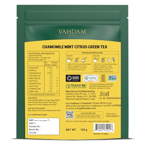 Absolutely loved this. I am a big fan of vahdam green teas. This tea is awesome in taste as it has a mint flavour and it is refreshing too. This has a very nice smell and very hygienically packed as every single tea bag is in a separate packet. I recommend this to everyone. This has amazing herbal goodness that makes us fit and active.