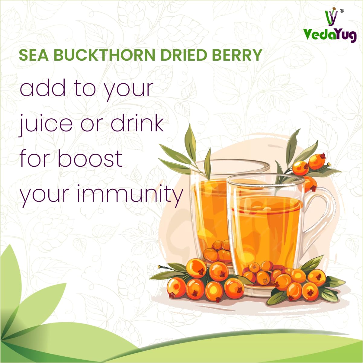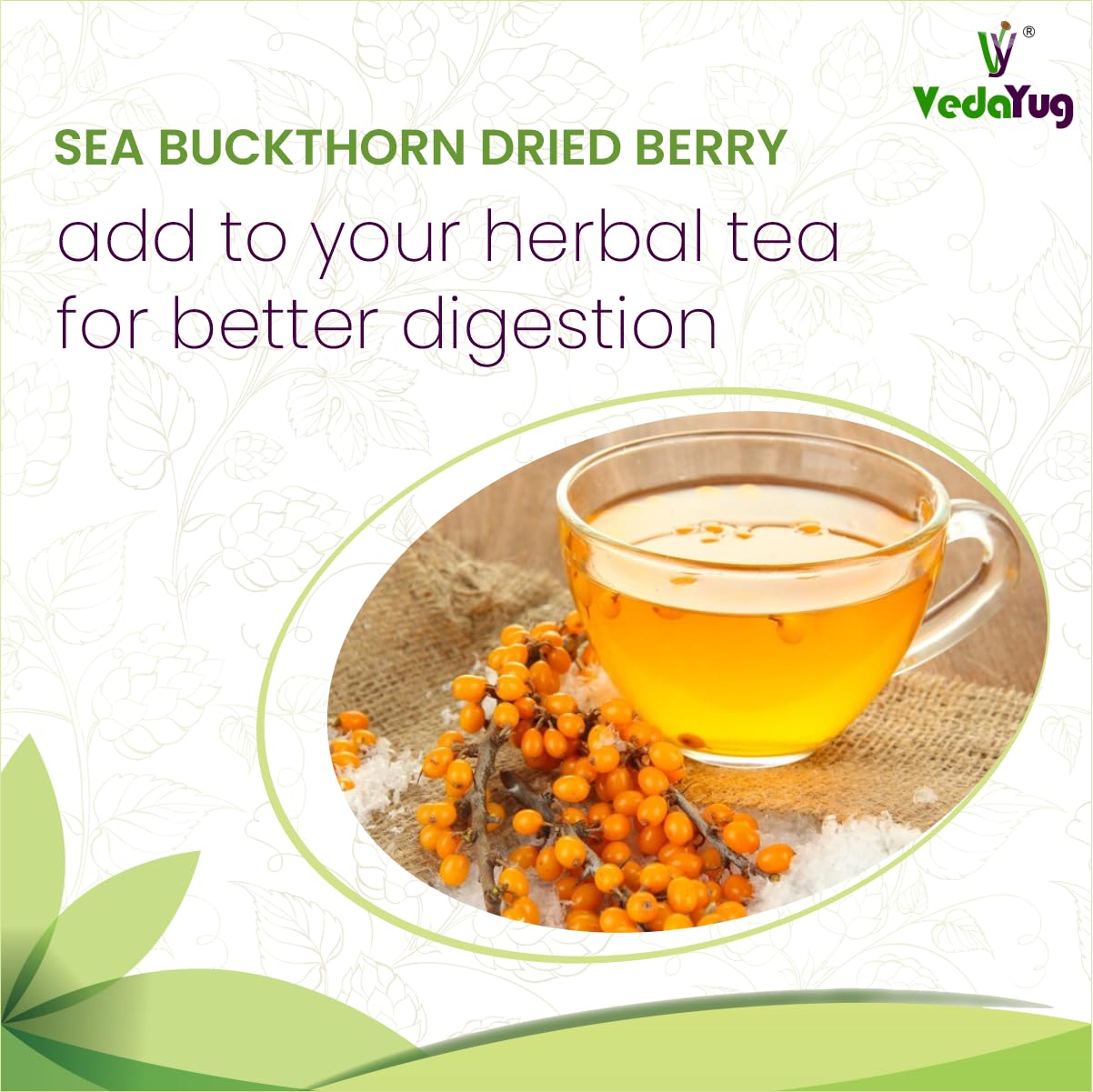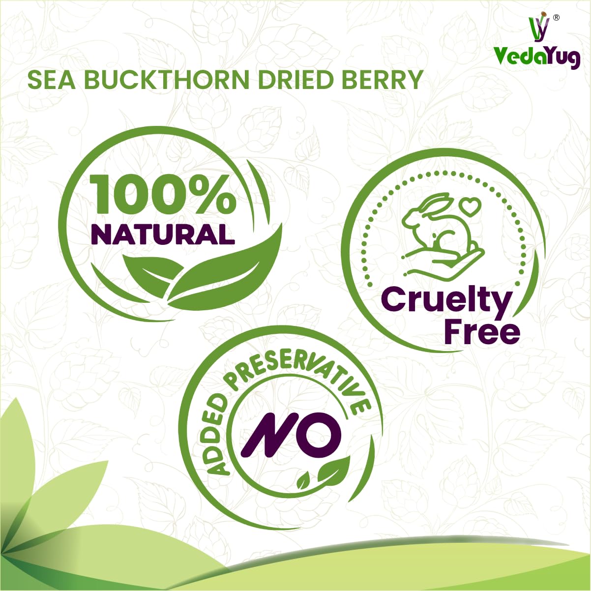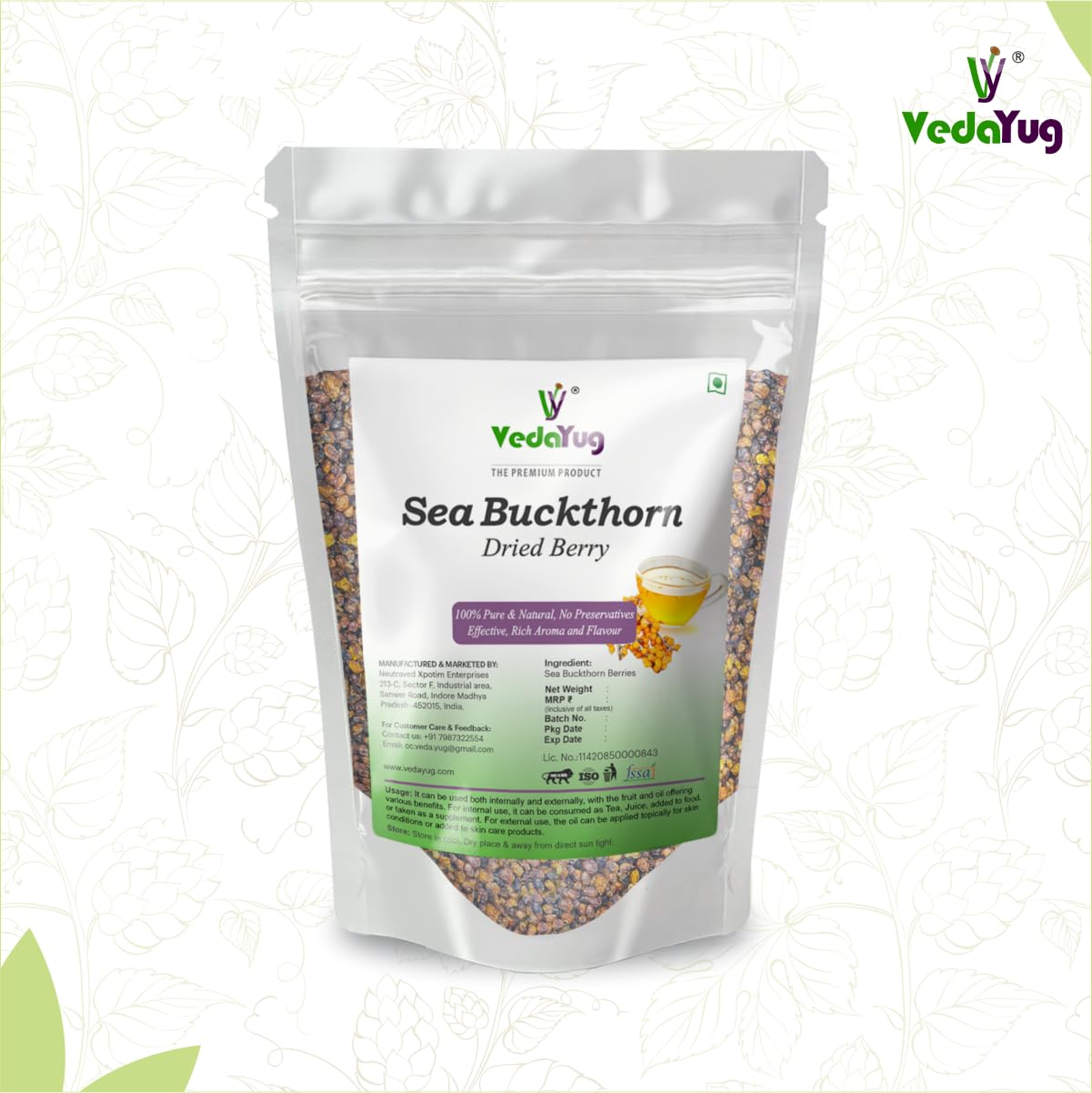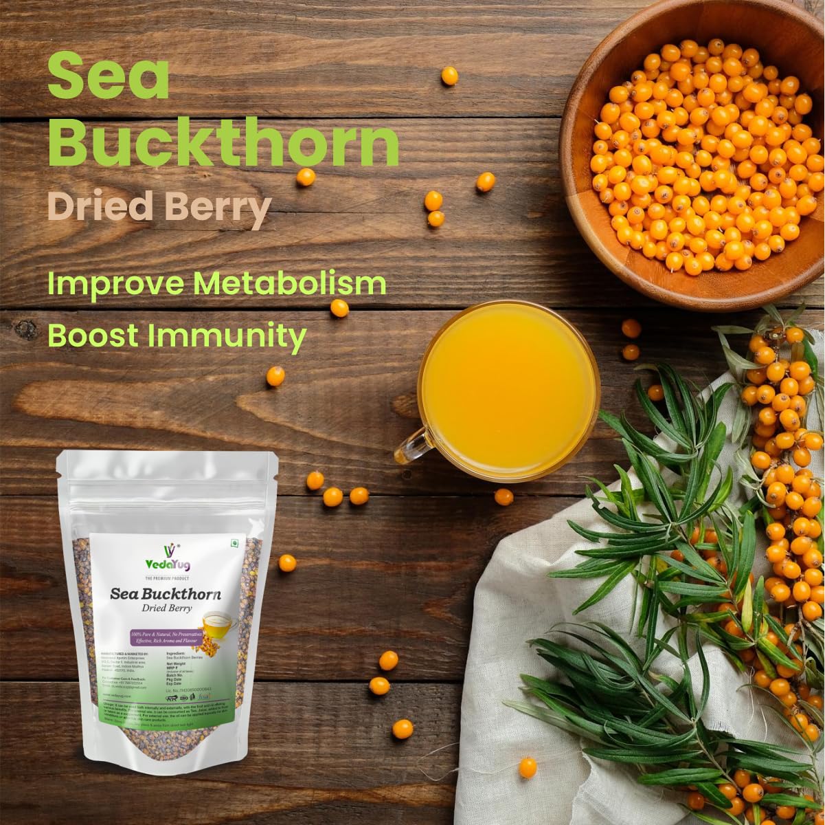 VY VedaYug Himalayan Sea Buckthorn Dry Berry 200 Gram | Nourishes Skin | Vitamin E & C | Sea Buckthorn Berry in Small Cut for Juices Tea or Recipes - 200g