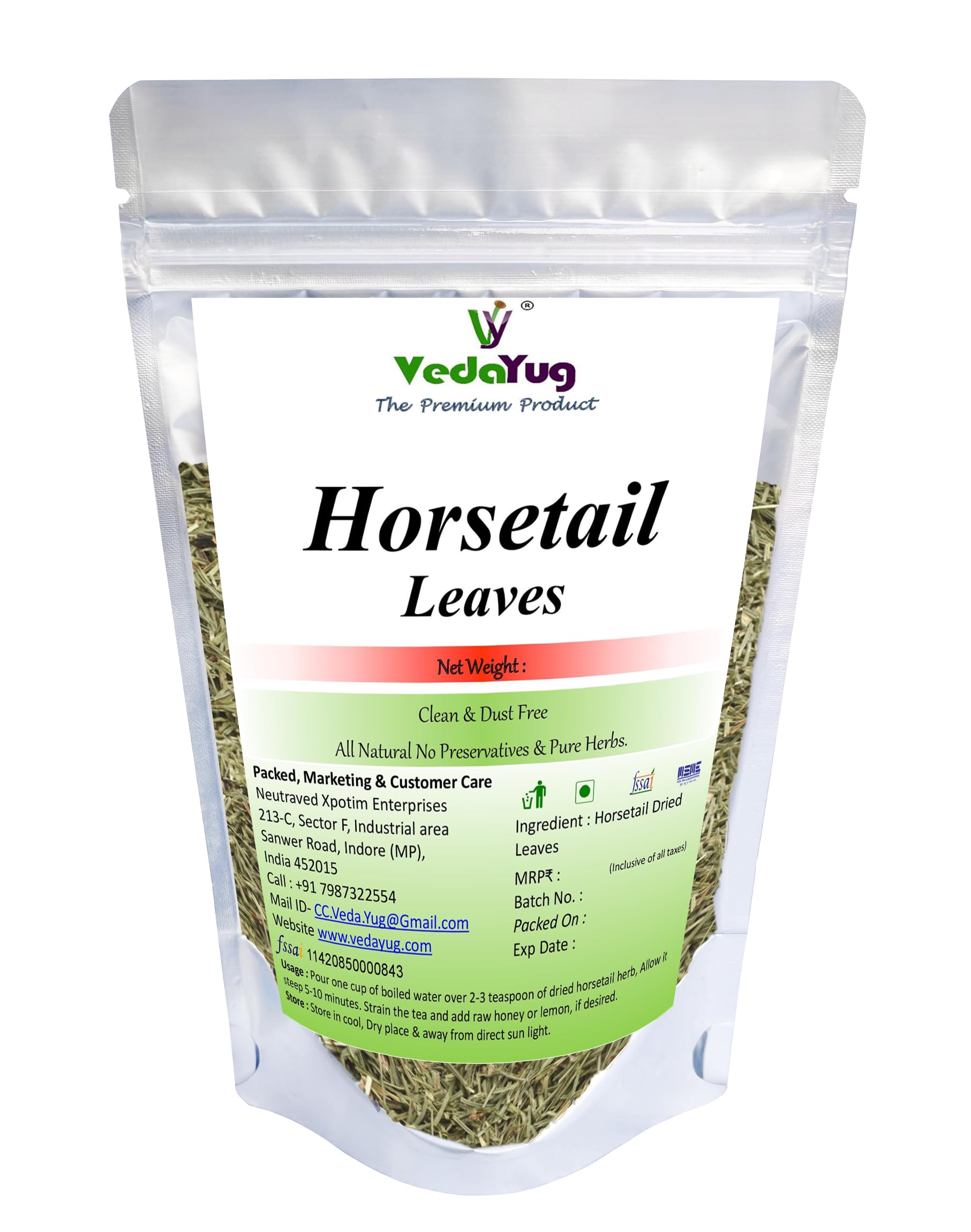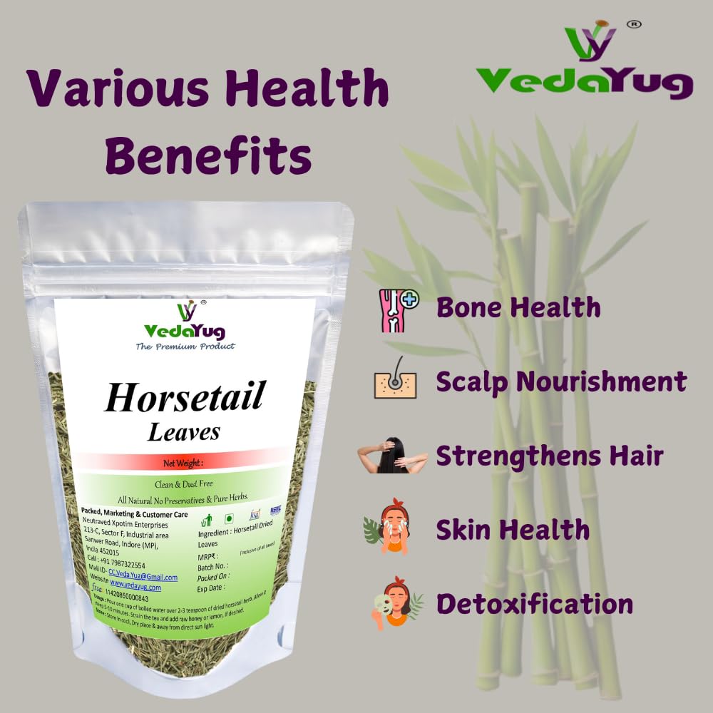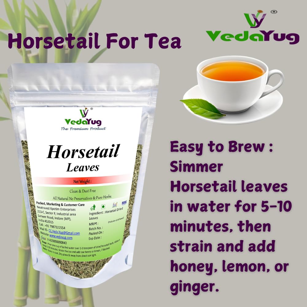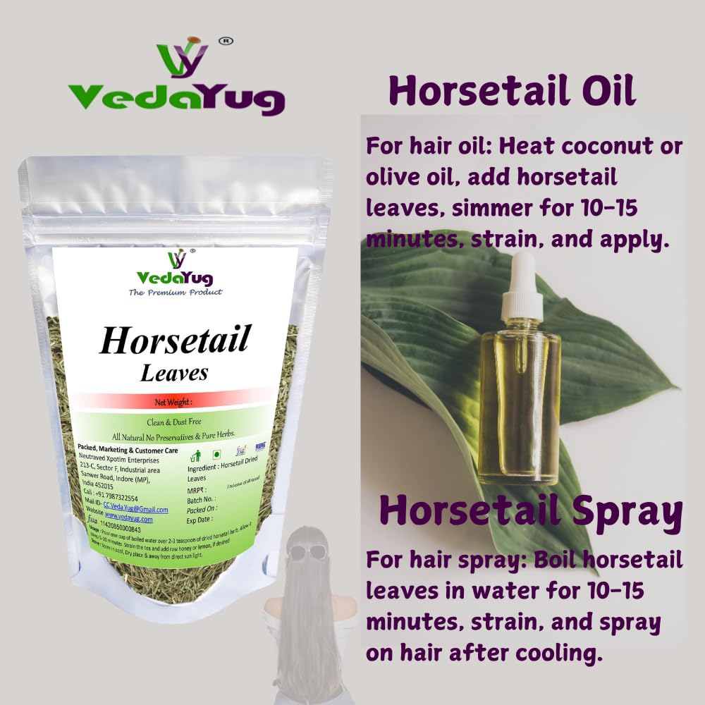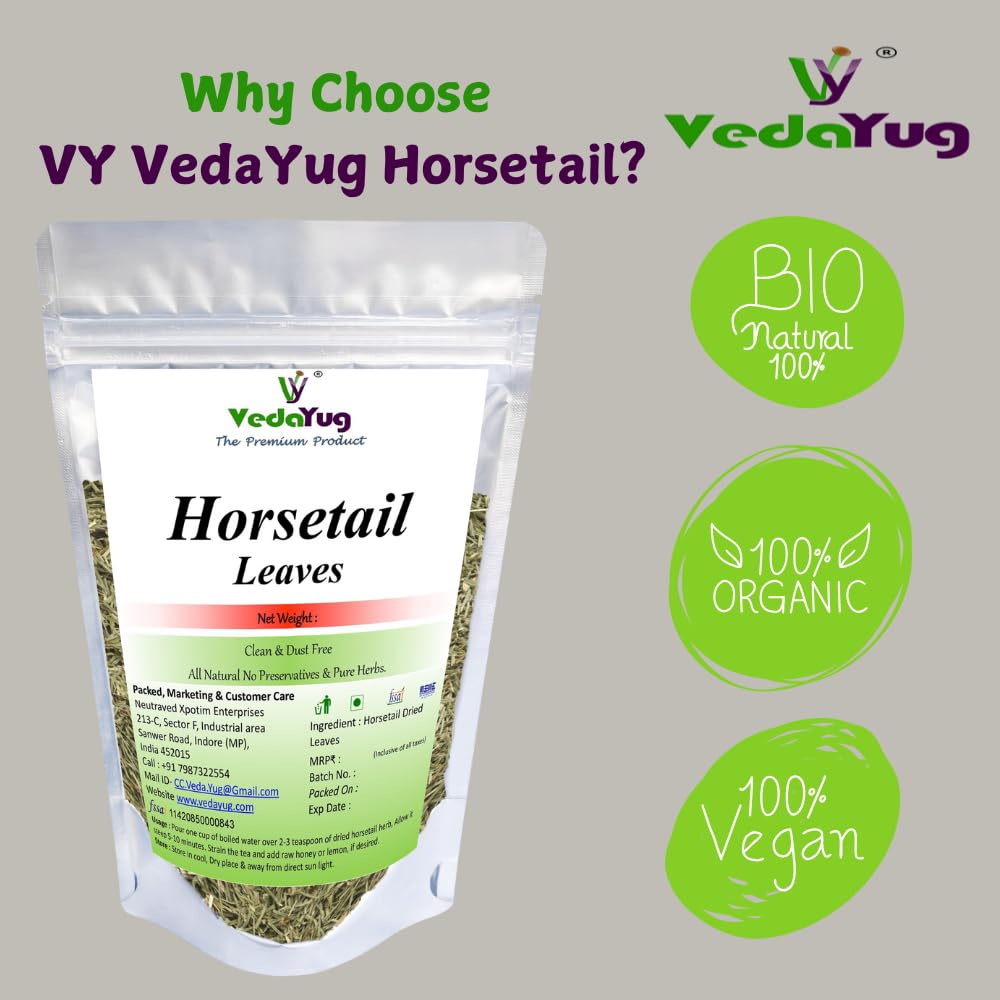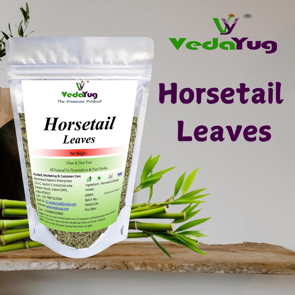 Enhance your hair care routine with VY Vedayug Horsetail Leaves a natural and potent herbal supplement designed to promote hair growth and improve hair strength. Rich in silica these horsetail leaves support the production of collagen an essential component for healthy hair skin and nails. Whether you’re brewing a refreshing cup of herbal tea or creating a nourishing hair rinse Horsetail Leaves provide versatile benefits for your hair and overall well-being. Our horsetail leaves are sourced from premium quality plants ensuring you receive the best nature has to offer. In addition to promoting hair growth horsetail tea offers calming and hydrating effects making it a perfect addition to your daily wellness routine. Our product is 100% natural and organic free from harmful additives.