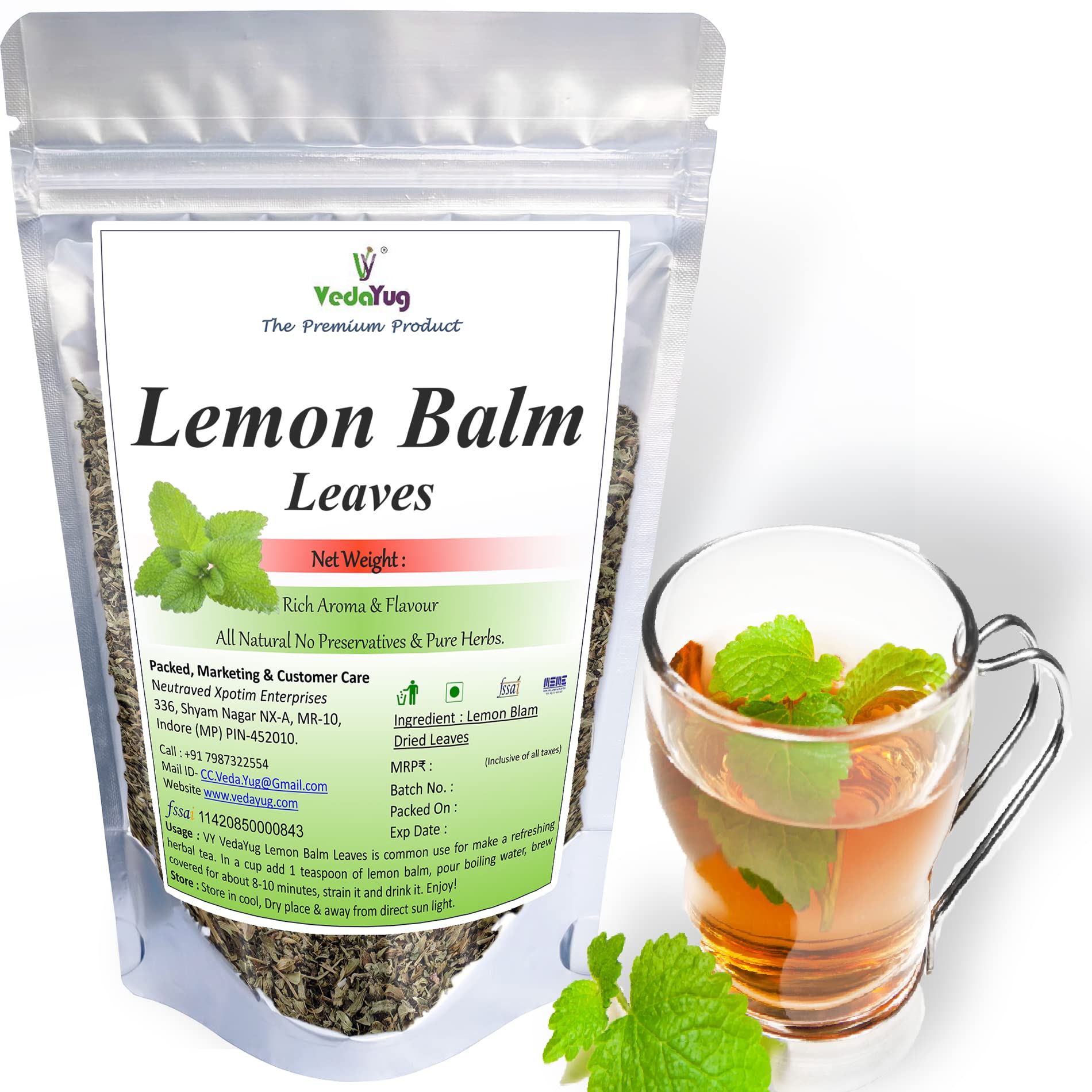VY VedaYug Lemon Blam Lemon Balm Tea Leaves Lemon Balm Tea 100g
