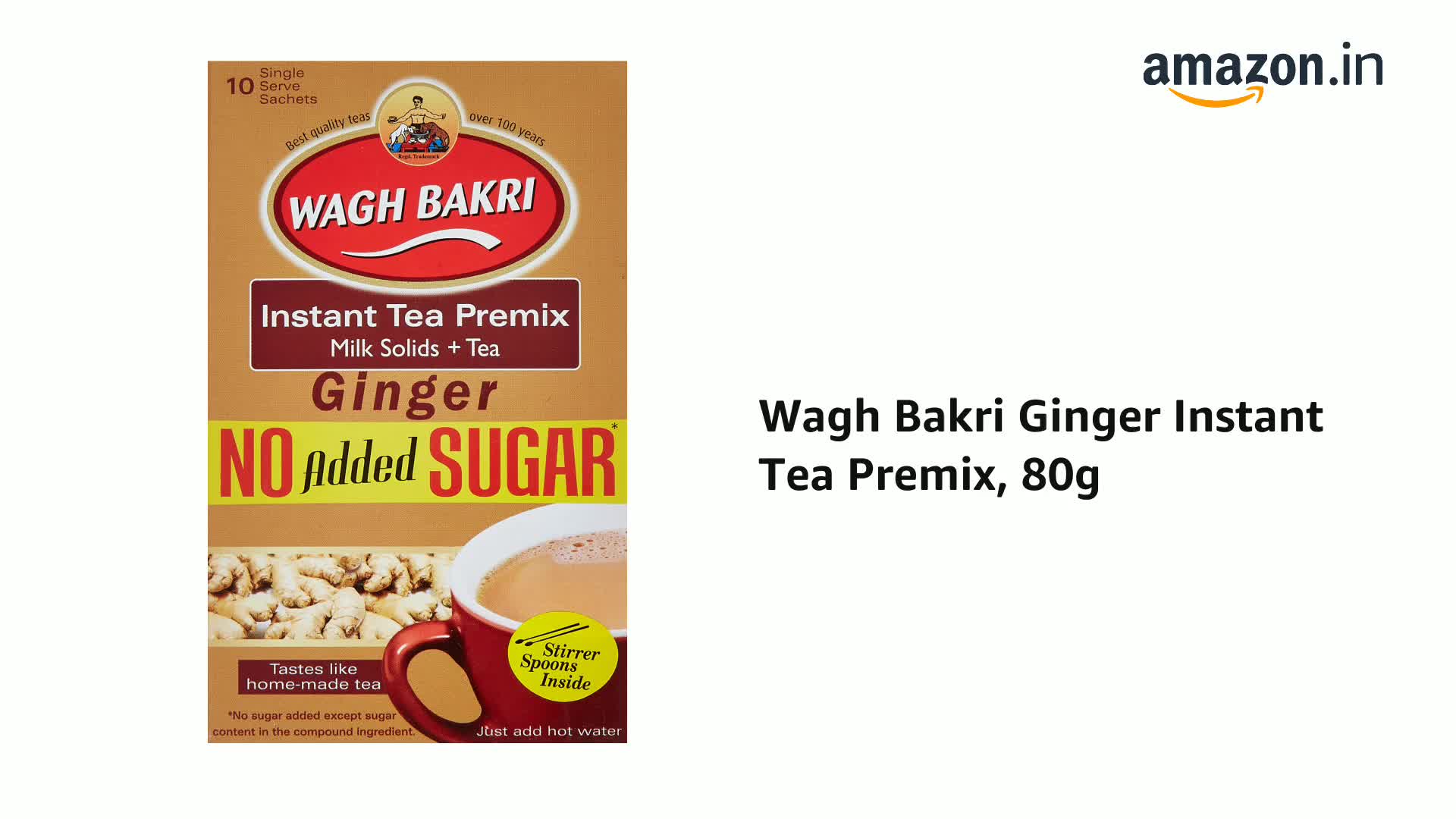 Milk Solids + Ginger Tea Just add hot water Tastes like home made tea Stirrer Spoons inside 10 Single Serve Sachets