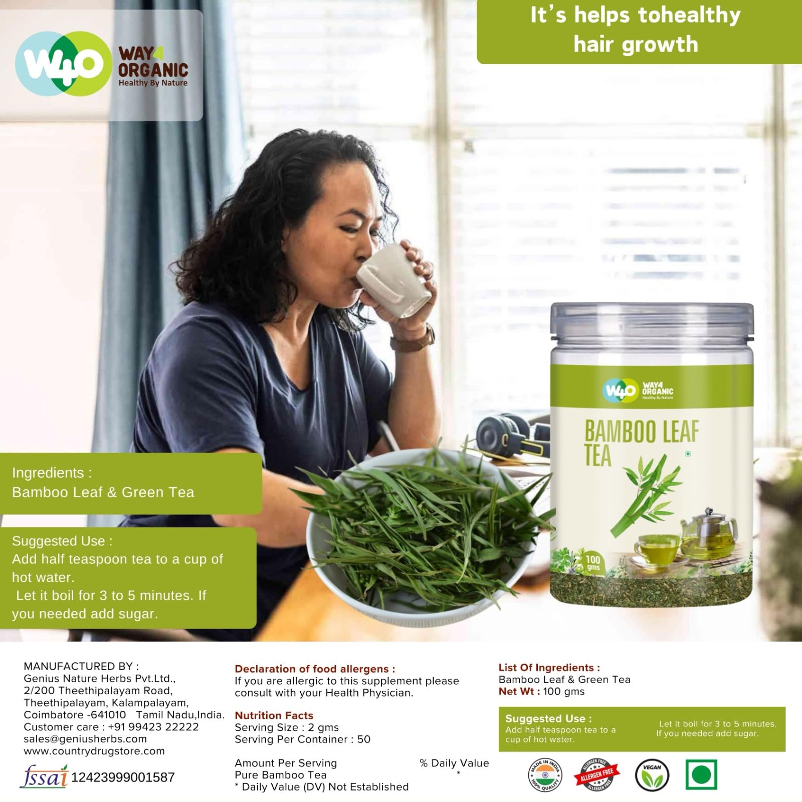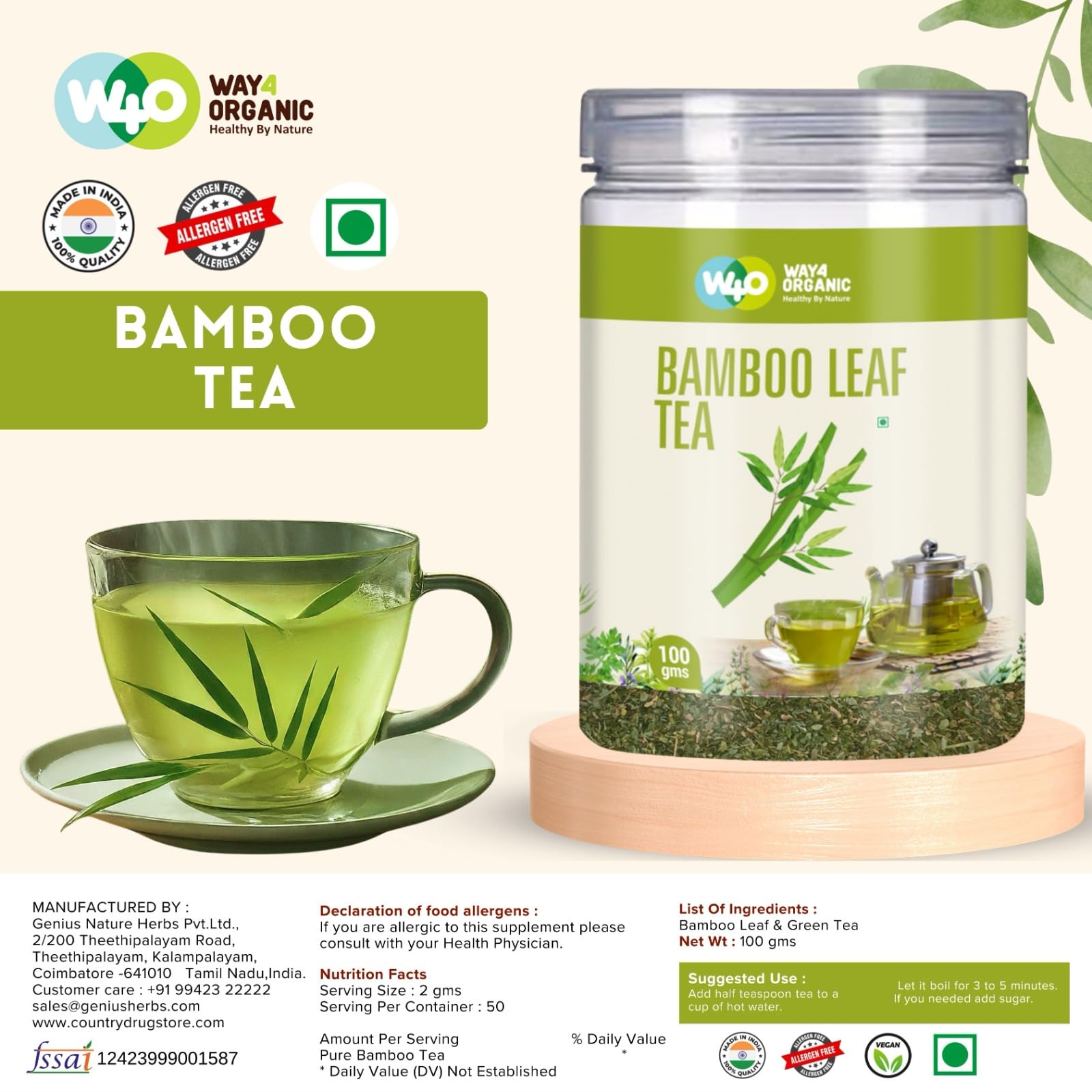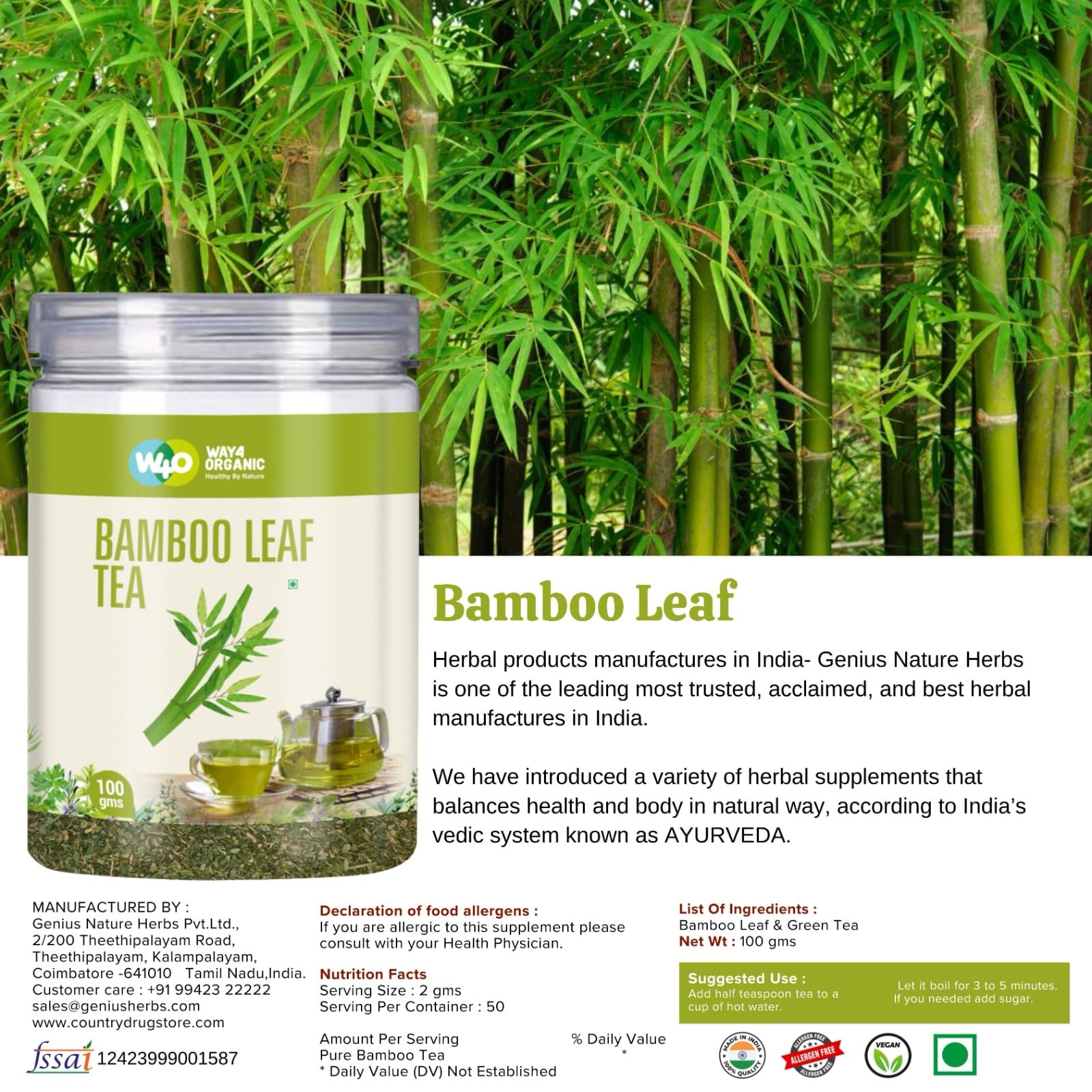 Way4Organic Bamboo Leaf Tea 100 g Canister Pack (Pack of 1)