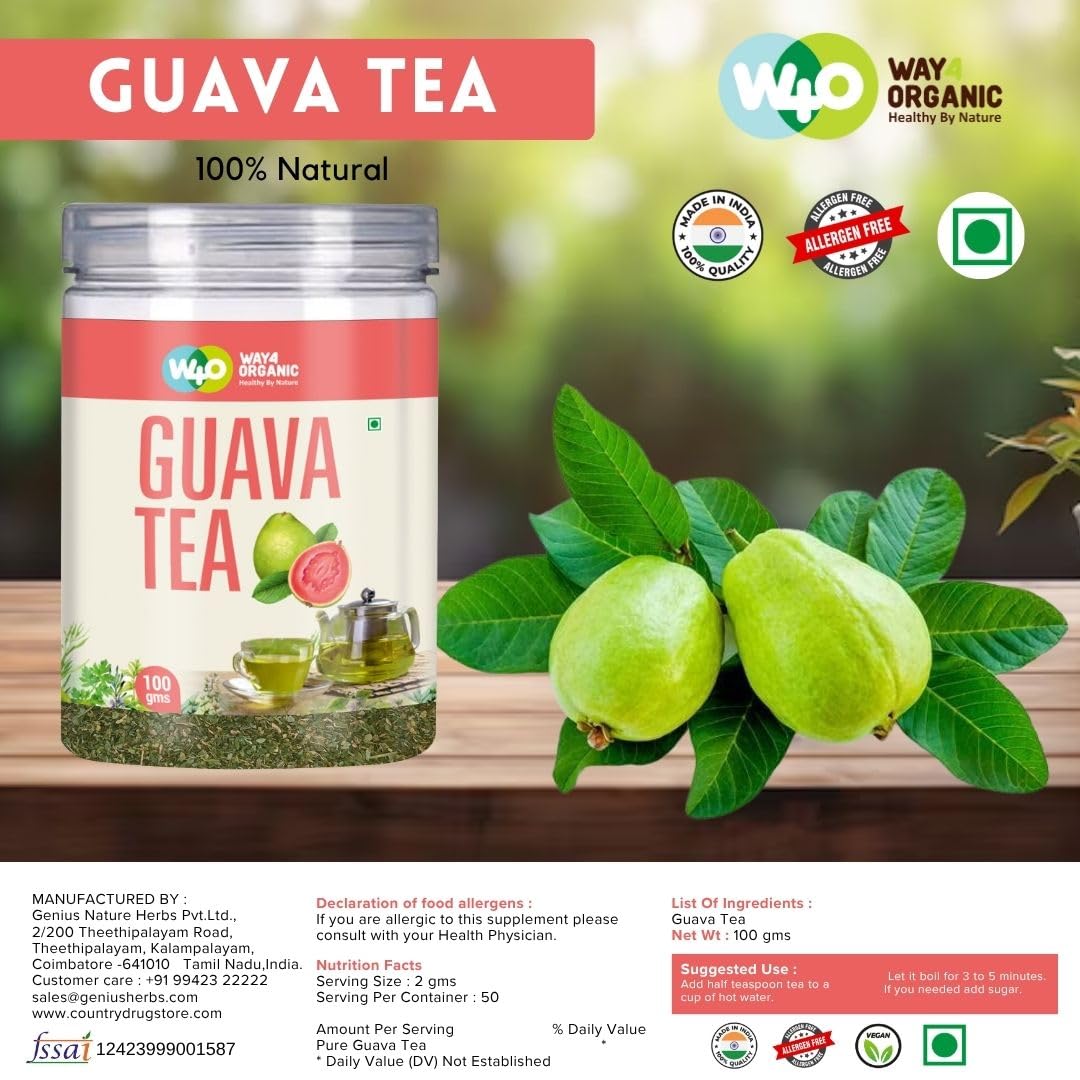 Way4Organic Guava Leaf Tea 100g Canister (Pack of 1) | Psidium Guajava Herbal Tea | Natural Detox & Blood Sugar Support