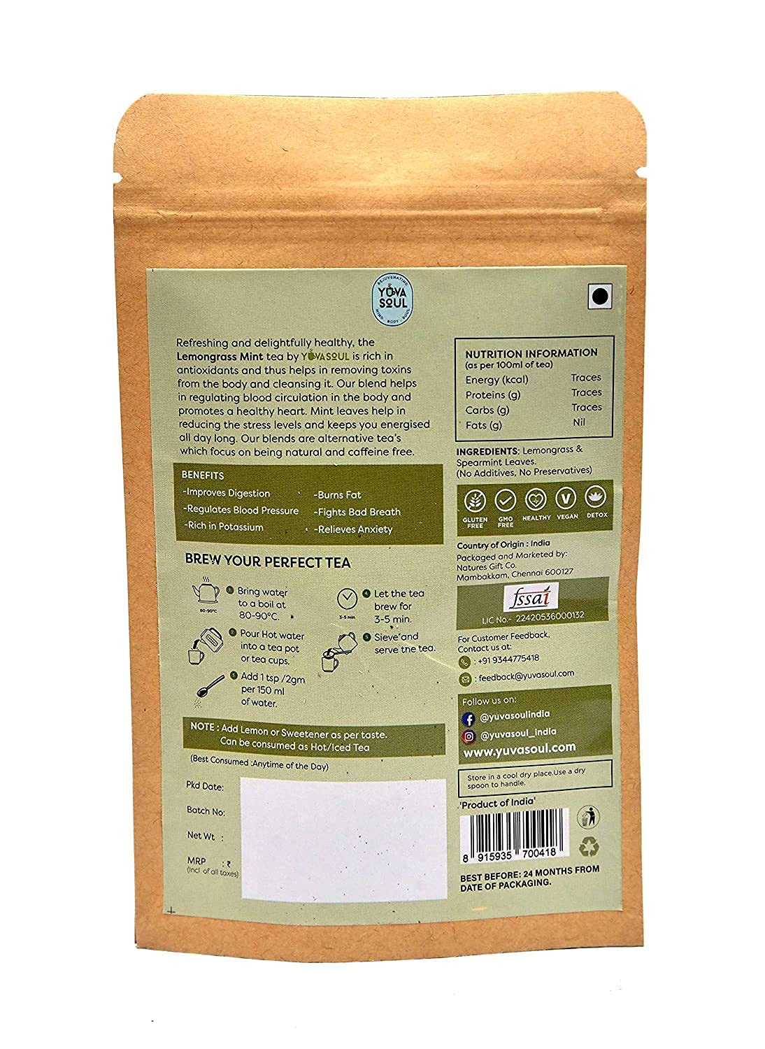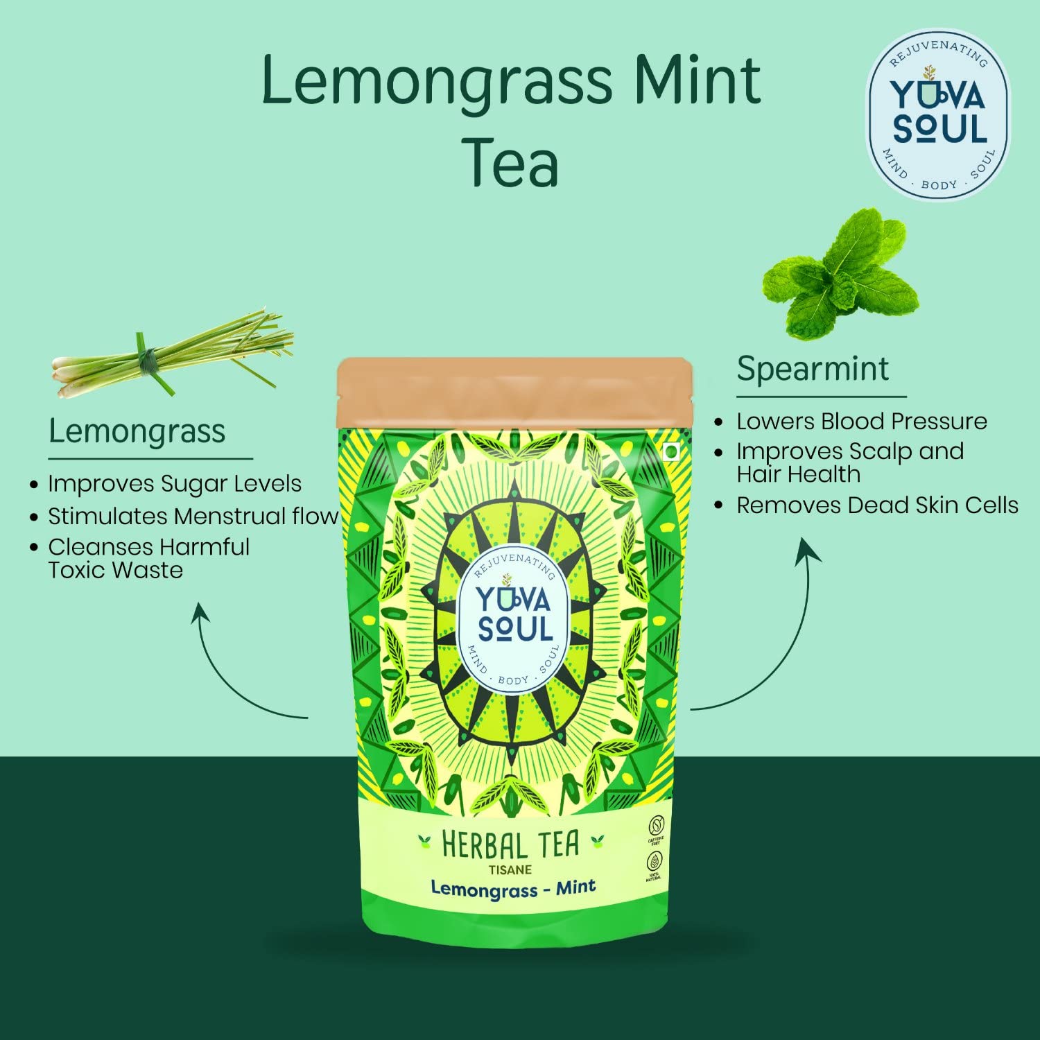 YUVA SOUL Lemongrass - Mint Herbal Tea - 25 Grams