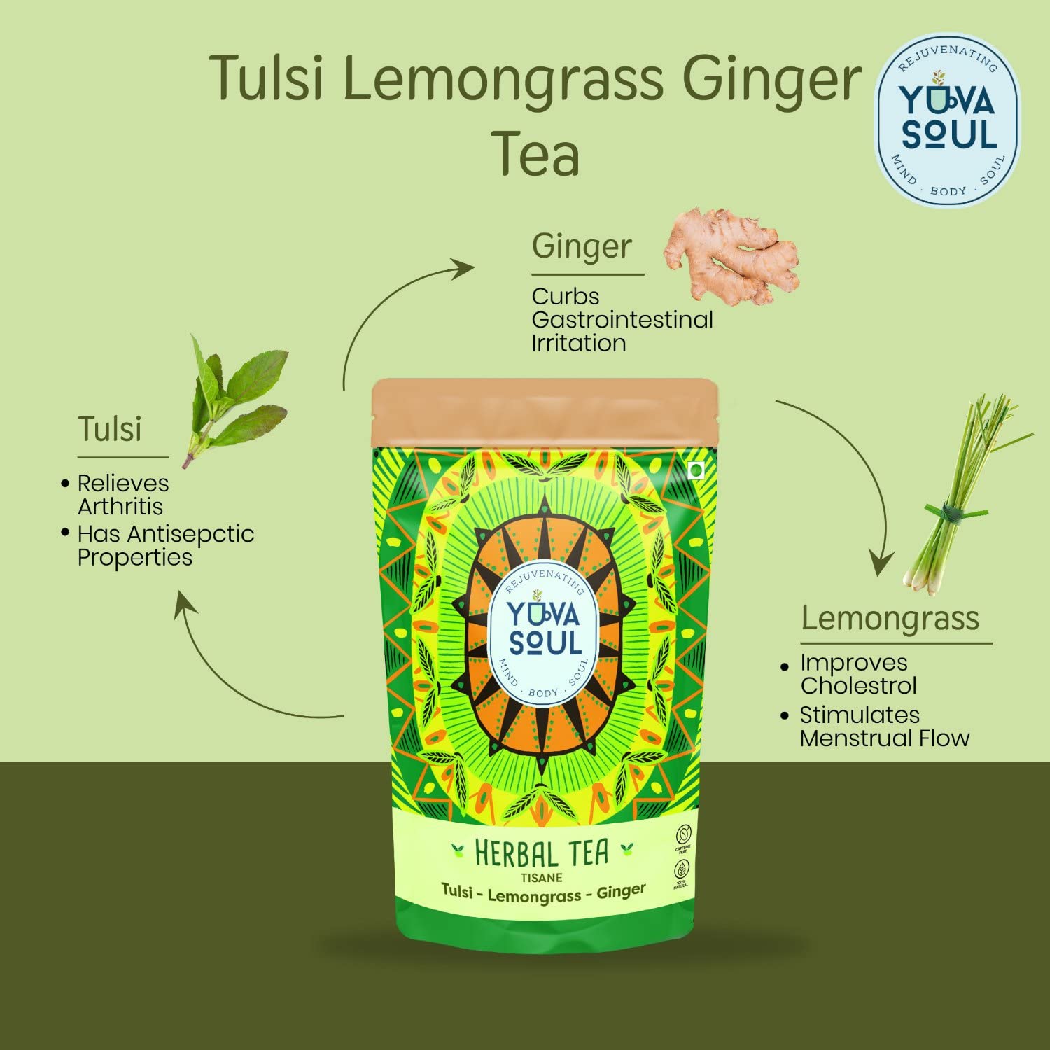 YUVA SOUL Tulsi-Lemongrass-Ginger Herbal Tea - 75 Grams
