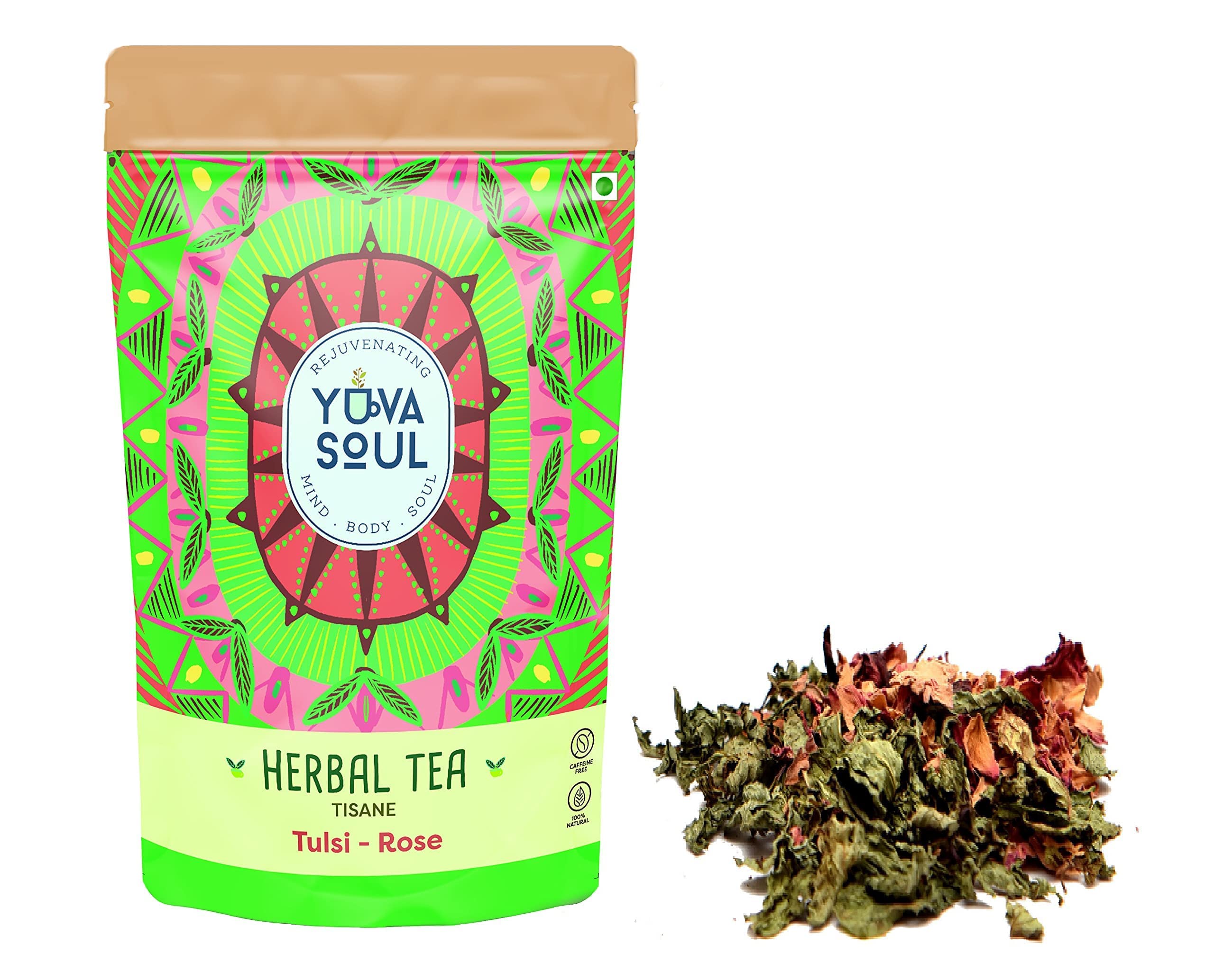 Known for its immunity boosting properties the Yuva Soul Tulsi Rose tea is rich in antioxidants and increases energy levels. Used as the prime herb since ancient ayurveda for its healing properties Tulsi leaves infuses the tea with its antibacterial properties that soothes a sore throat. Whereas the blend of rose in the tea has a calming effect on the mind and body and also results in radiant skin.
