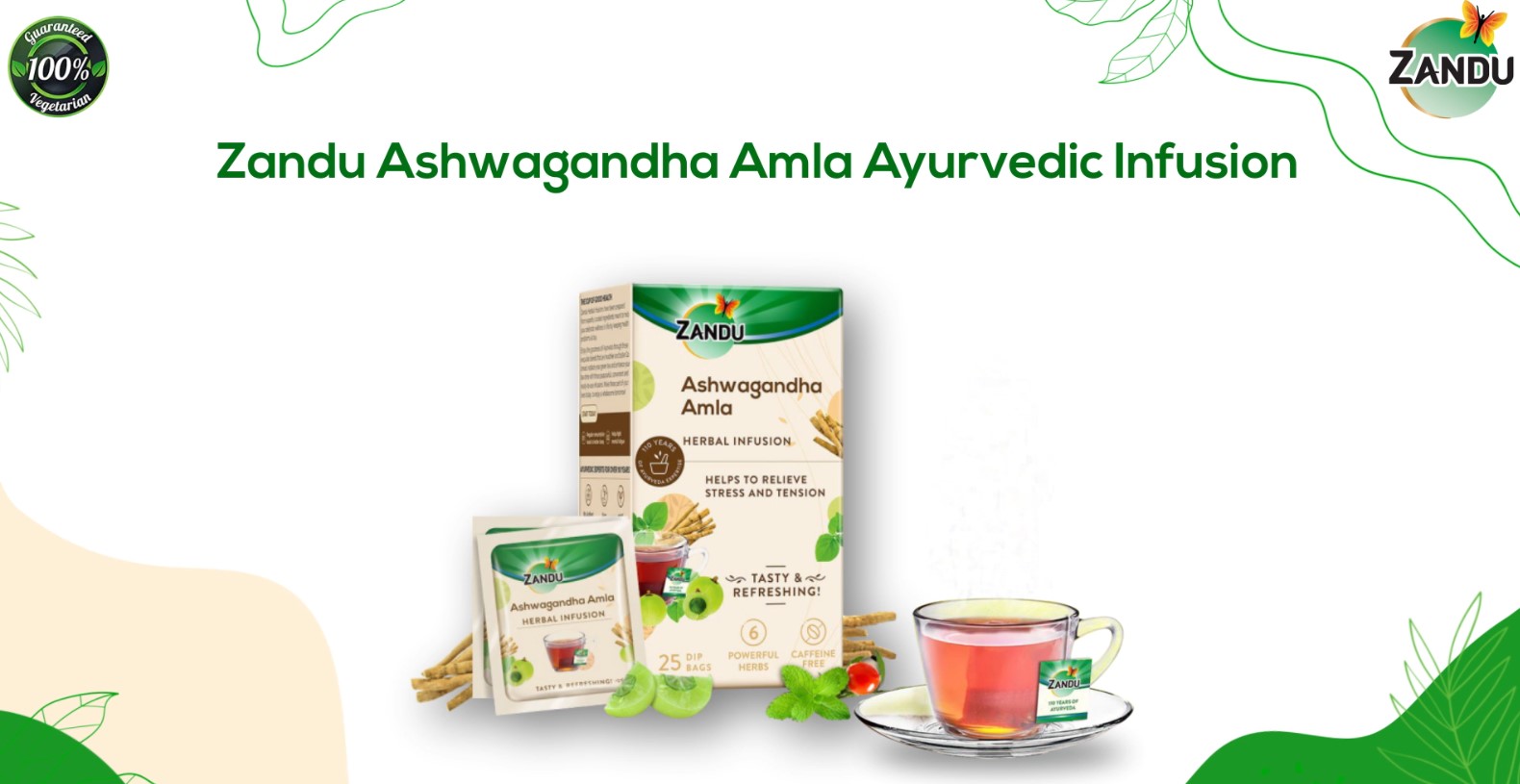 • Exquisite Blend of Ayurvedic Ingredients: Zandu brings you a refreshing Herbal tea Ashwagandha Amla Ayurvedic Infusion prepared from 6 powerful Ayurvedic ingredients - Ashwagandha Amalaki (Rich in Vitamin C) Mandukaparni Yashti Tulsi & Jatiphala that help