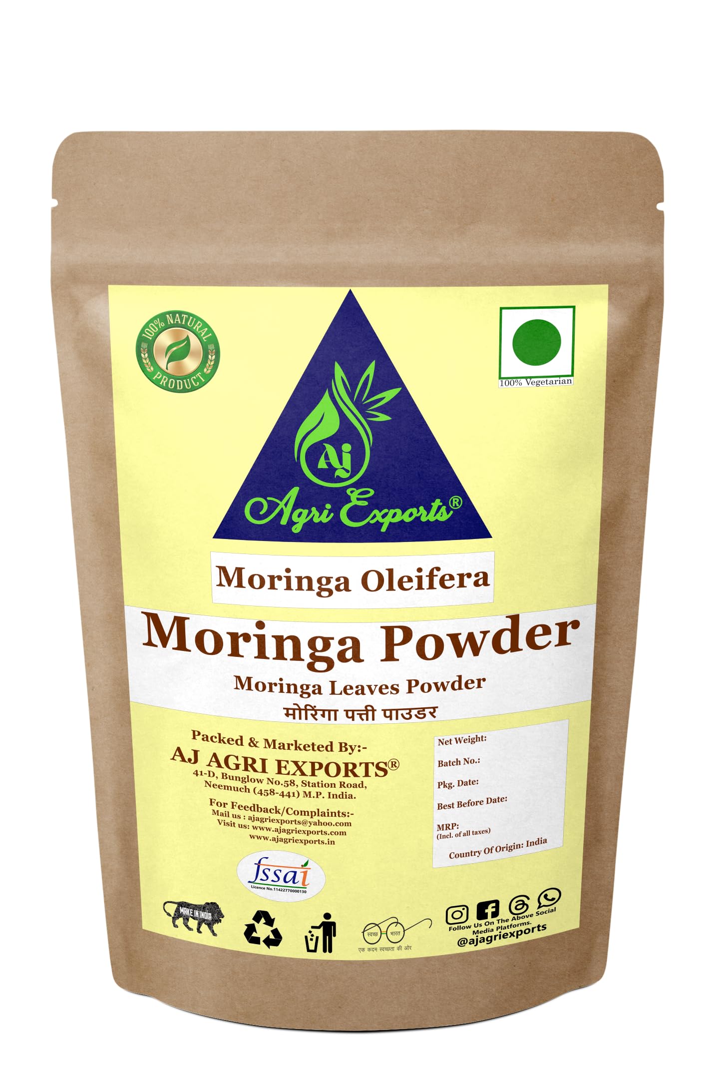 AJ AGRI EXPORTS Moringa Powder Moringa Oleifera Leaf Powder Natural Immunity Booster Anti-Oxidant and Protein Rich 100 Grams