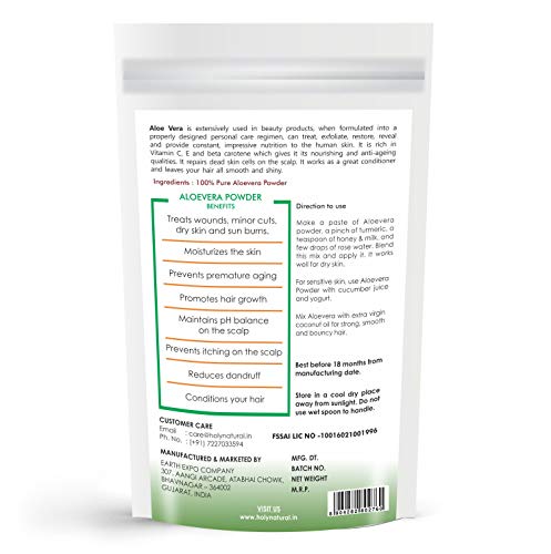 Aloe Vera is extensively used in beauty products when formulated into a properly designed personal care regimen can treat exfoliate restore reveal and provide constant impressive nutrition to the human skin. It is rich in Vitamin C E and beta carotene which gives it its nourishing and anti-ageing qualities. It repairs dead skin cells on the scalp. It works as a great conditioner and leaves your hair all smooth and shiny. Direction to use: Make a paste of Aloevera powder a pinch of turmeric a teaspoon of honey & milk and few drops of rose water. Blend this mix and apply it. It works well for dry skin. For sensitive skin use Aloevera Powder with cucumber juice and yogurt. Mix Aloevera with extra virgin coconut for strong smooth and bouncy hair.