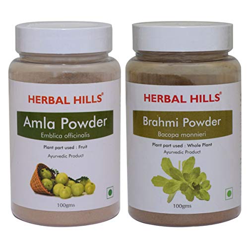 Herbal Hills Amla Powder and Brahmi Powder - 100 gms each for hair care and memory support