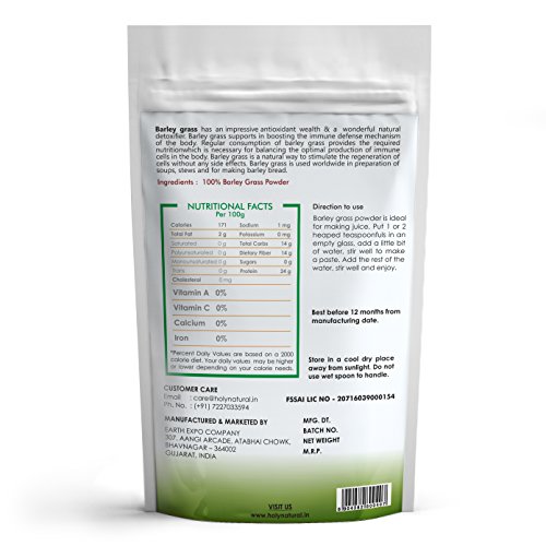 Barley grass has an impressive antioxidant wealth & a wonderful natural detoxifier. Barley grass supports in boosting the immune defense mechanism of the body. Regular consumption of barley grass provides the required nutrition which is necessary for balancing the optimal production of immune cells in the body. Barley grass is a natural way to stimulate the regeneration of cells without any side effects. Barley grass is used worldwide in preparation of soups stews and for making barley bread. Direction to use: Barley grass powder is ideal for making juice. Put 1 or 2 heaped teaspoon full in an empty glass add a little bit of water stir well to make a paste. Add the rest of the water stir well and enjoy.