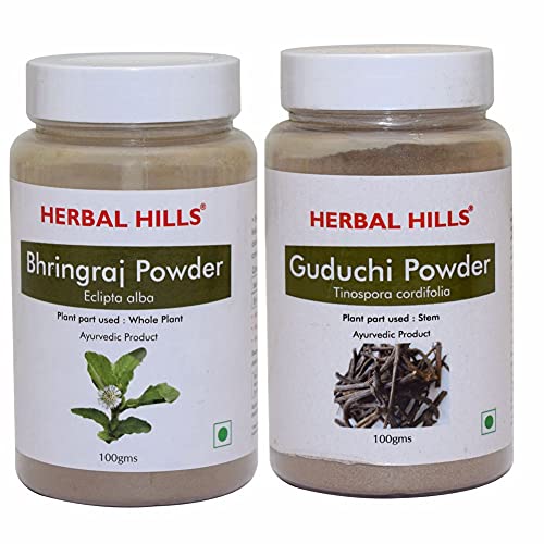 Herbal Hills Bhringraj powder and Guduchi Powder - 100 gms each for hair growth hair care and blood sugar control