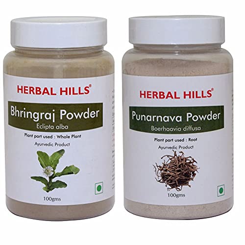Herbal Hills Bhringraj powder and Punarnava Powder - 100 gms each for hair growth hair care liver and kidney care