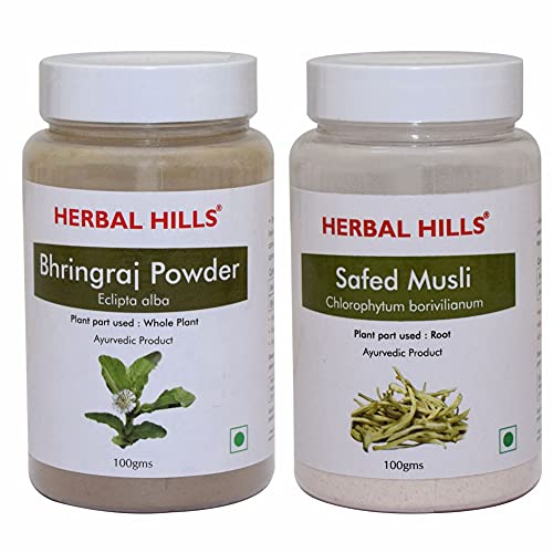 Herbal Hills Bhringraj powder and Safed Musli powder - 100 gms powder each for hair growth hair care and mens health