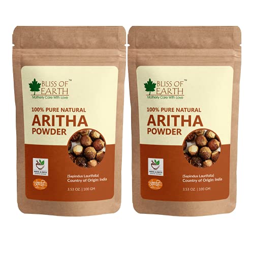 Bliss of Earth� 100% Pure Reetha Powder | 2x100GM | Aritha Powder |Natural & Chemically Free Hair Cleanser | Gorgeous & Silky Hair |
