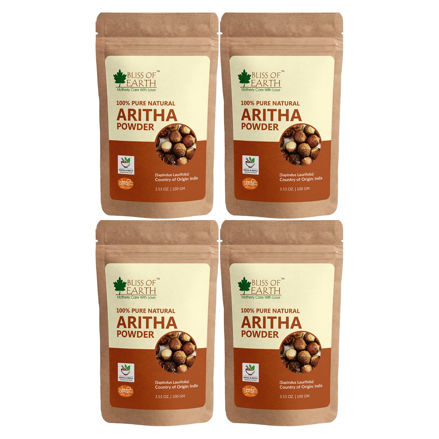 A herb relied upon since times immemorial Reetha needs no elaboration when it comes topampering your crowning glory. Prescribed in ancient Ayurvedic texts use of Reetha (soap nuts)helps arrest excess (and definitely ) hair fall. Use is cushy and a no-brainer. Mix with your favourite ingredient water or yogurt. Get ingeniousand add more herbs to your hair potion and there you go your anti-hair loss and scalp-soothinghair pack is ready. From showing the door to dandruff scalp itchiness flakiness lice etc. to even imparting a stunninglustre to your hair while thickening hair to no end Bliss of EarthoReetha powder is to be takensolemnly if you want your hair game to be strong and also your locks! Ours is organically grownhand-picked diligently and ground finely. It will make it your good books instantly you bet.
